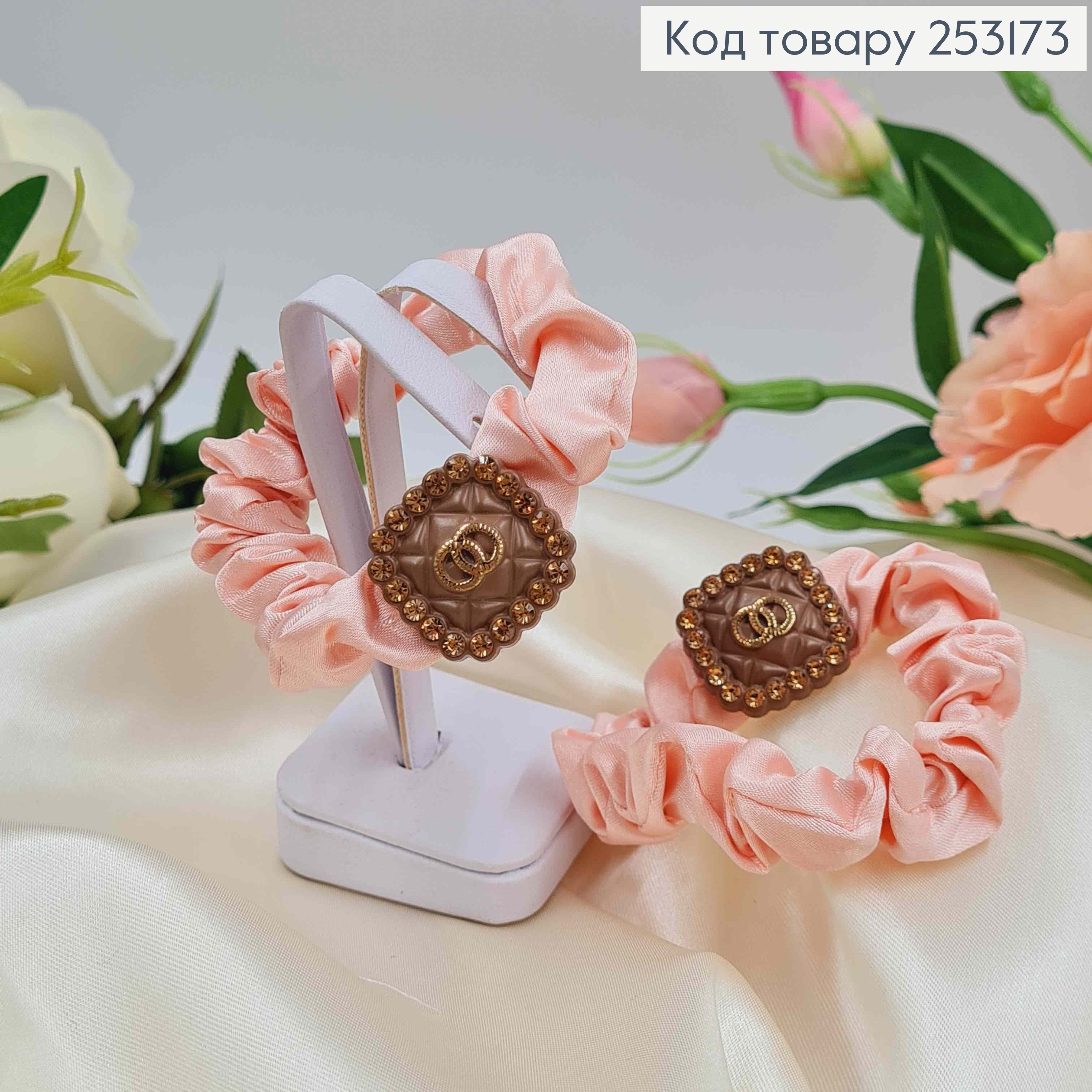 Резинка на планшетці (2шт) Жатка в стразах з Бусиною CHANGE, Пастельні кольори, діаметр 6см 253234 фото