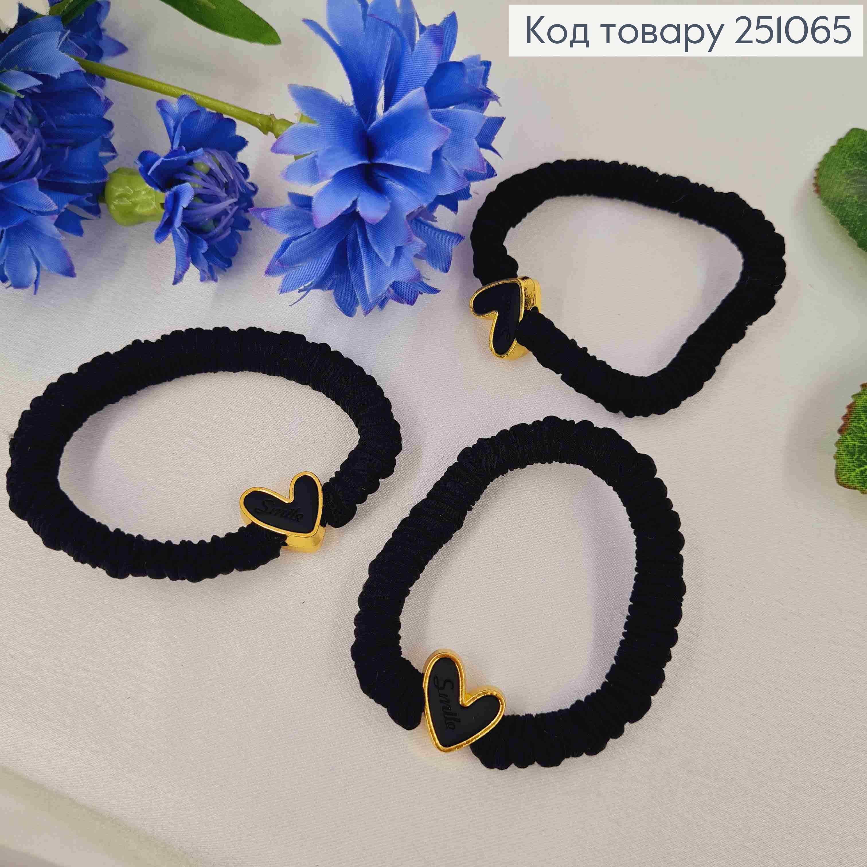 Резинка-жатка атласна 5см, з Серцем "Smile", Чорного кольору