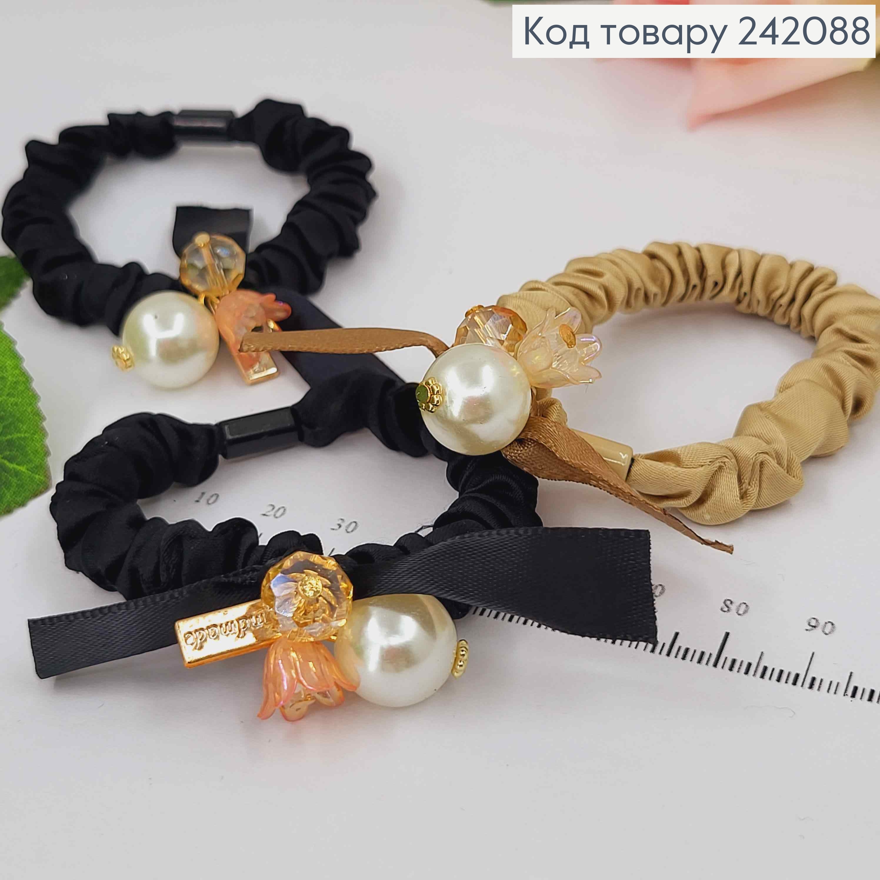Резинка шнурок з Бантиком, бусиною та каменем, Кольори в асортименті, резинка 5,5см, бант 3,5см 253232 фото