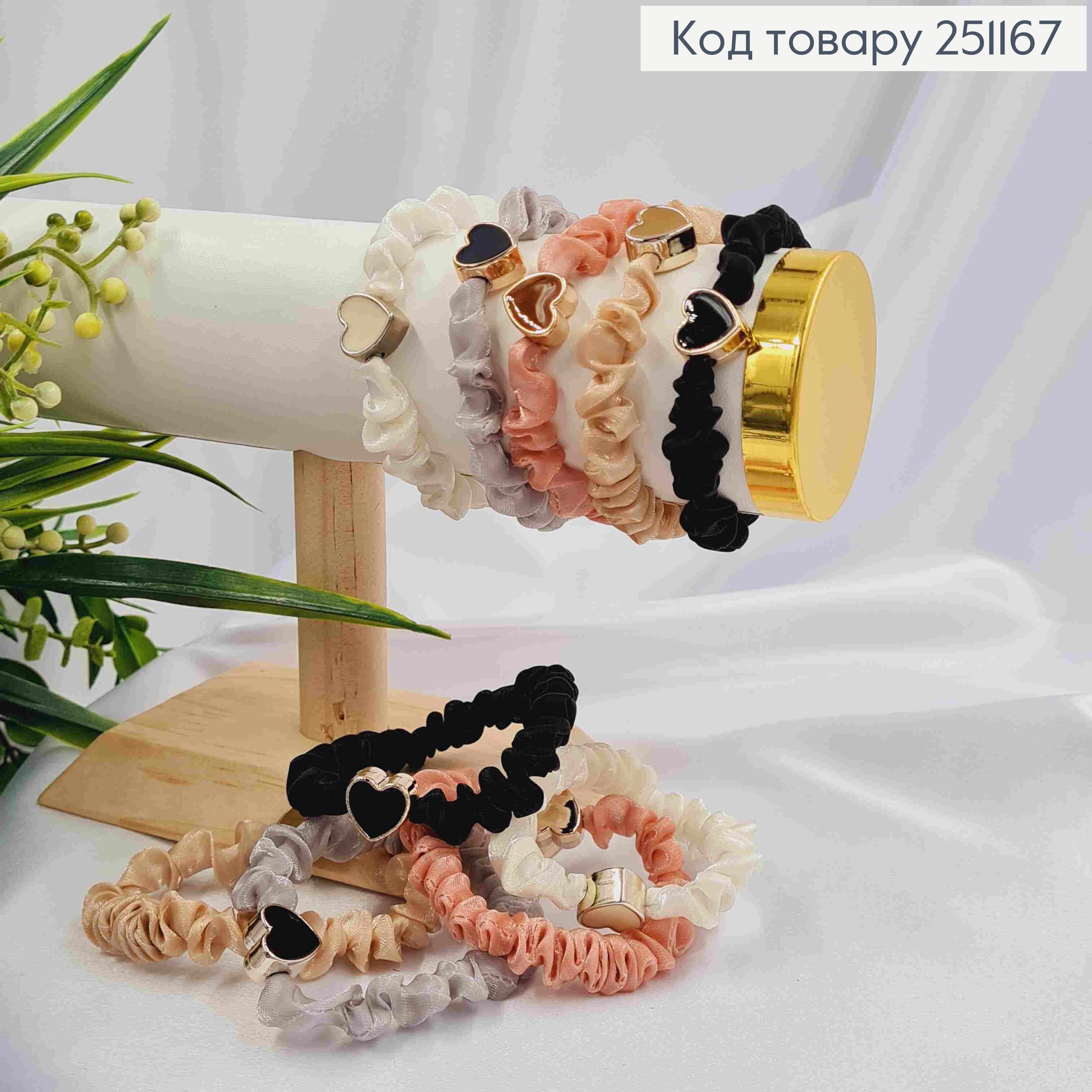 Резинка на планшетці (3шт) Шнурок з Бусинками "Сердечка", 5см, Кольори в асортименті 244204 фото