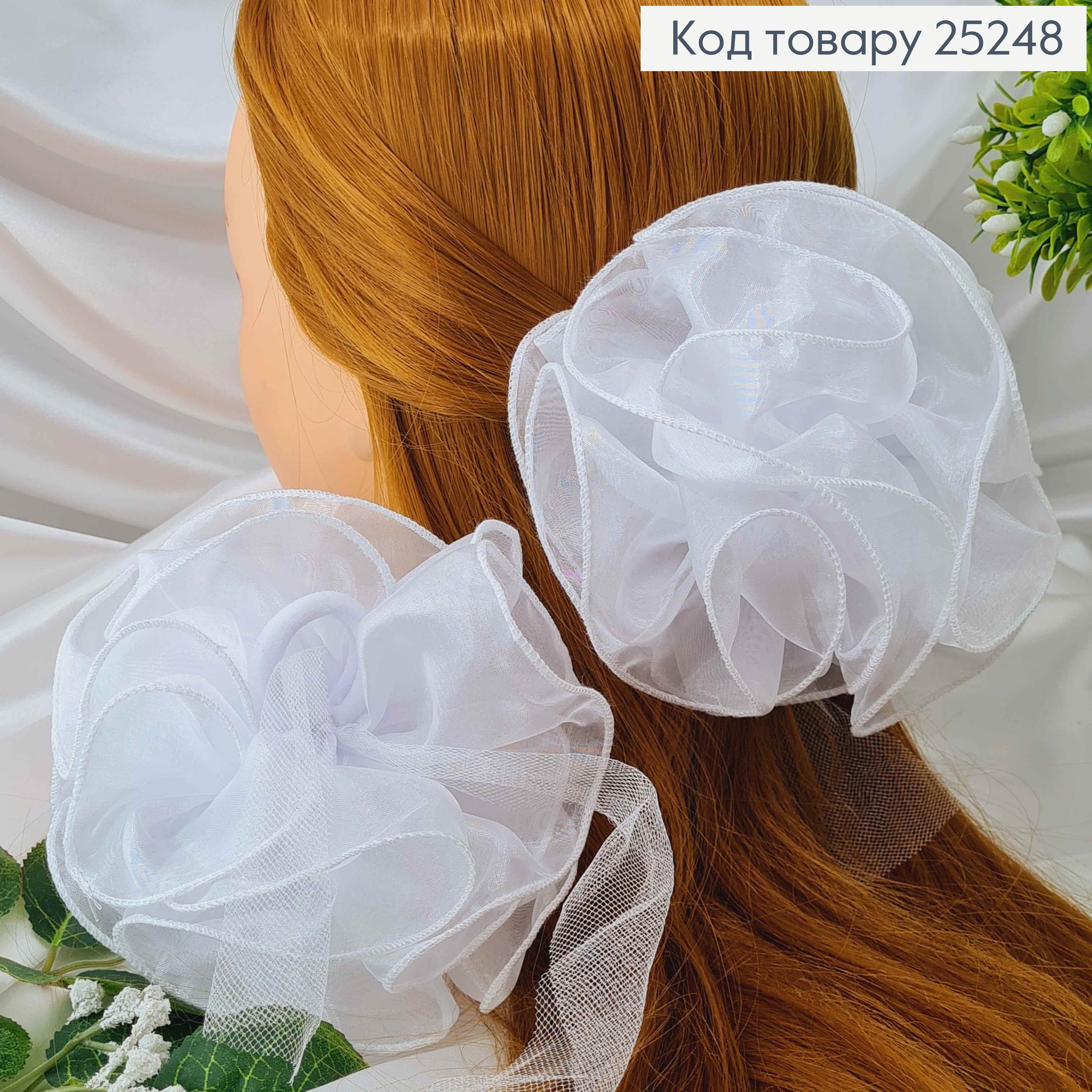 Бант БІЛОГО кольору, на заколці 5,5см, тканина мереживо+атлас, розмір 15*25см, Україна 276158 фото