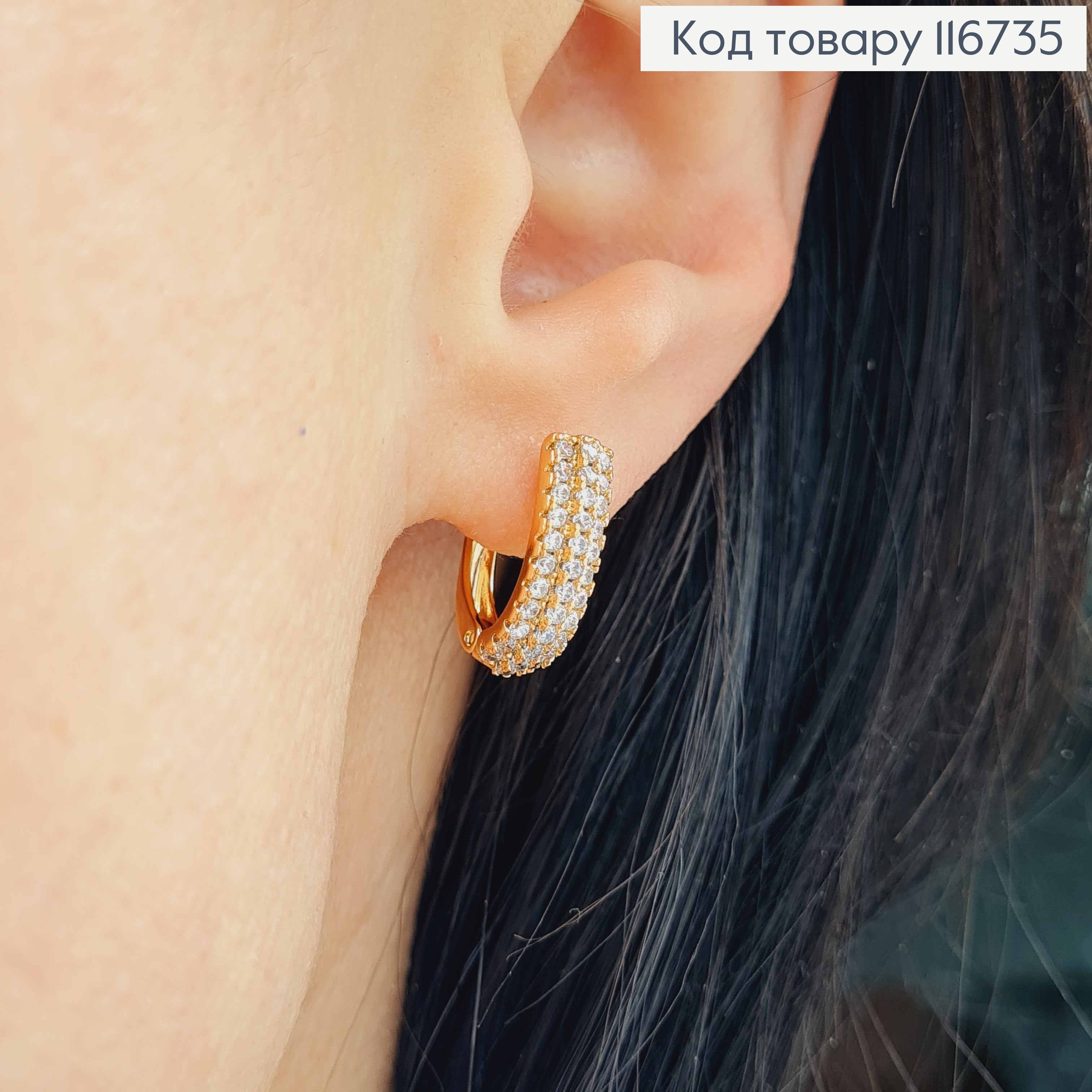 Сережки дуги, пластинки в блискучих камінцях, 1,5см, англ.заст. Xuping 18К