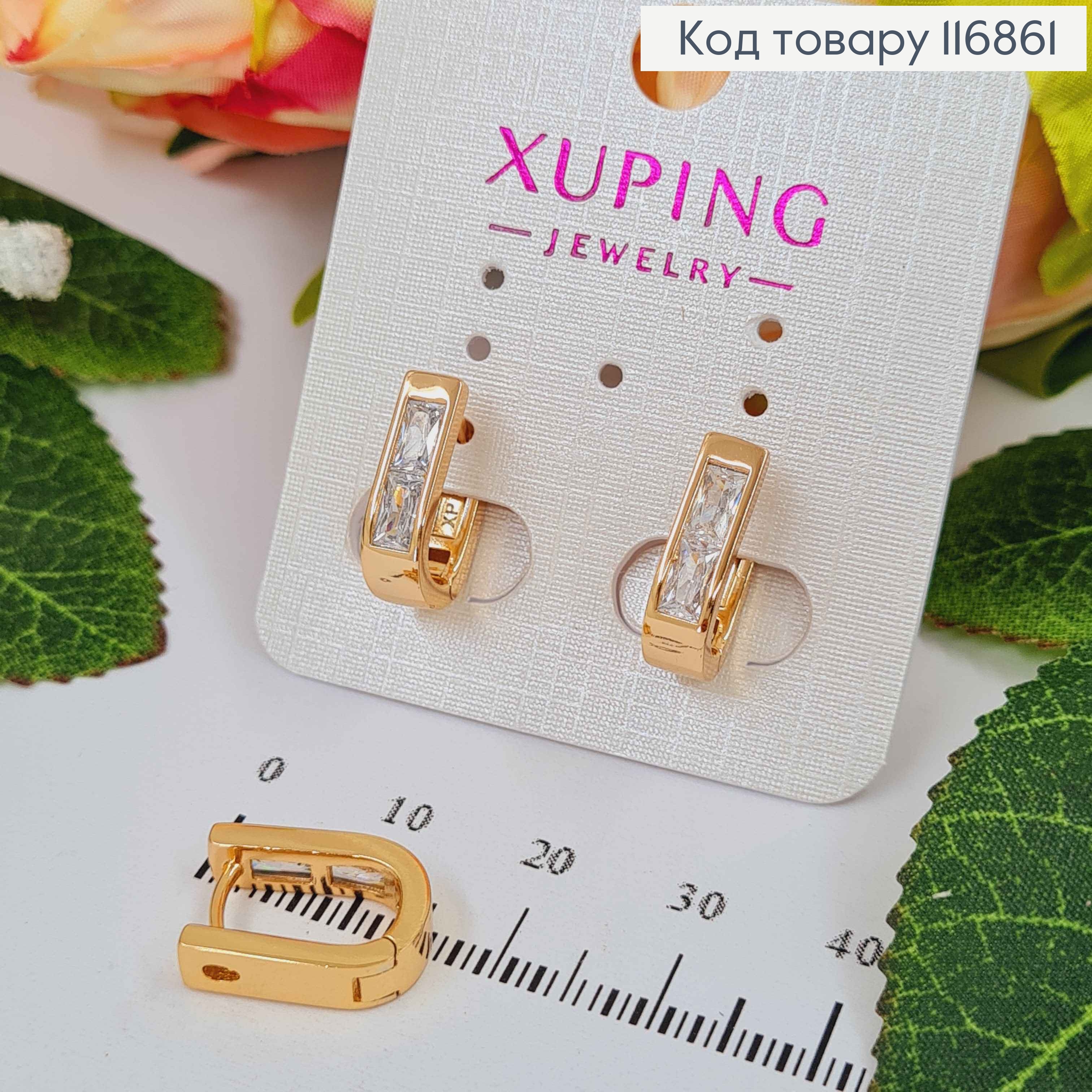Сережки дуги, з білим прямокутним камінцем, 1,5см, шир.4мм, анг. застібка, Xuping 18К