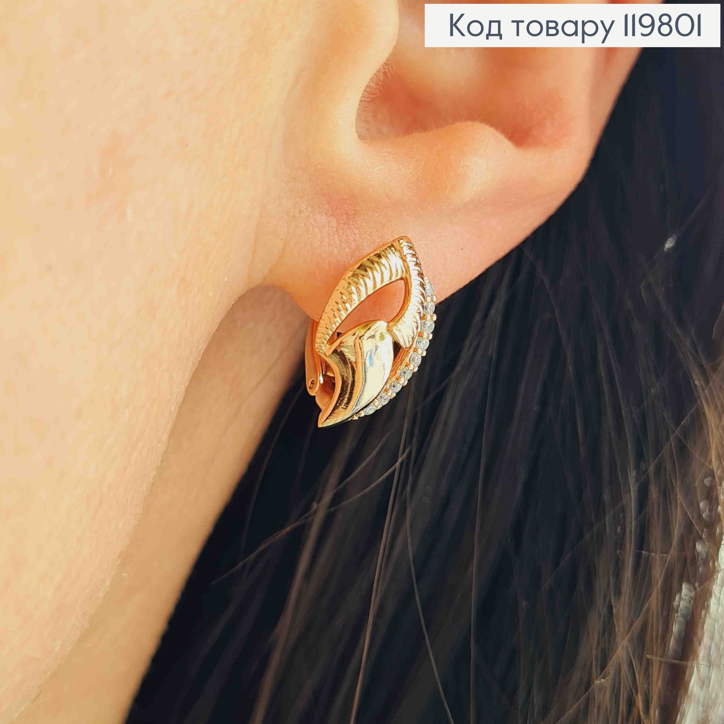 Сережки "Стріли" прикрашені Блискучими камінцями,  довжина 2,2см, англійська застібка, Xuping 18К 110204 фото