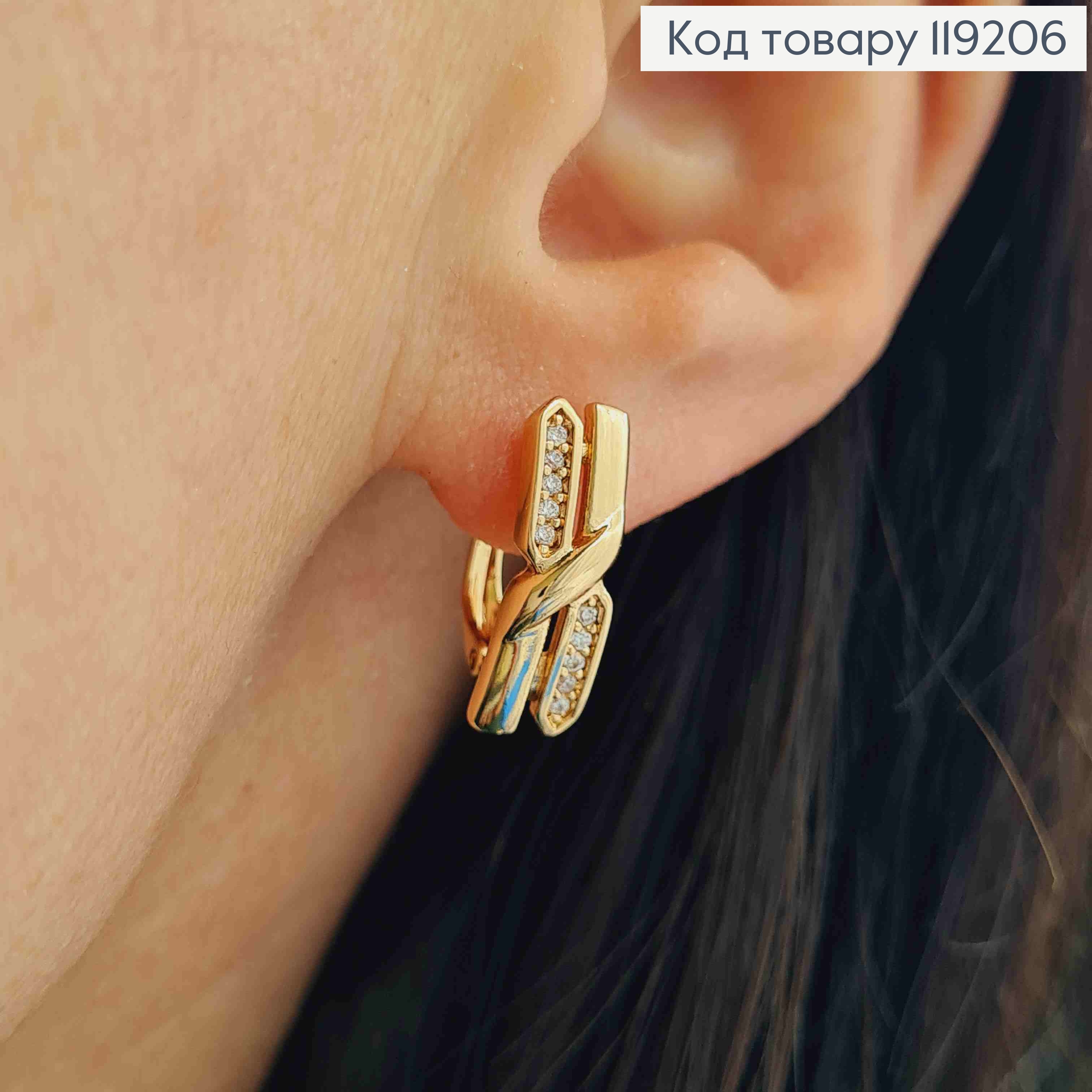 Сережки "Х" прикрашені Блискучими камінцями,  довжина 1,6см, англійська застібка, Xuping 18К 110206 фото