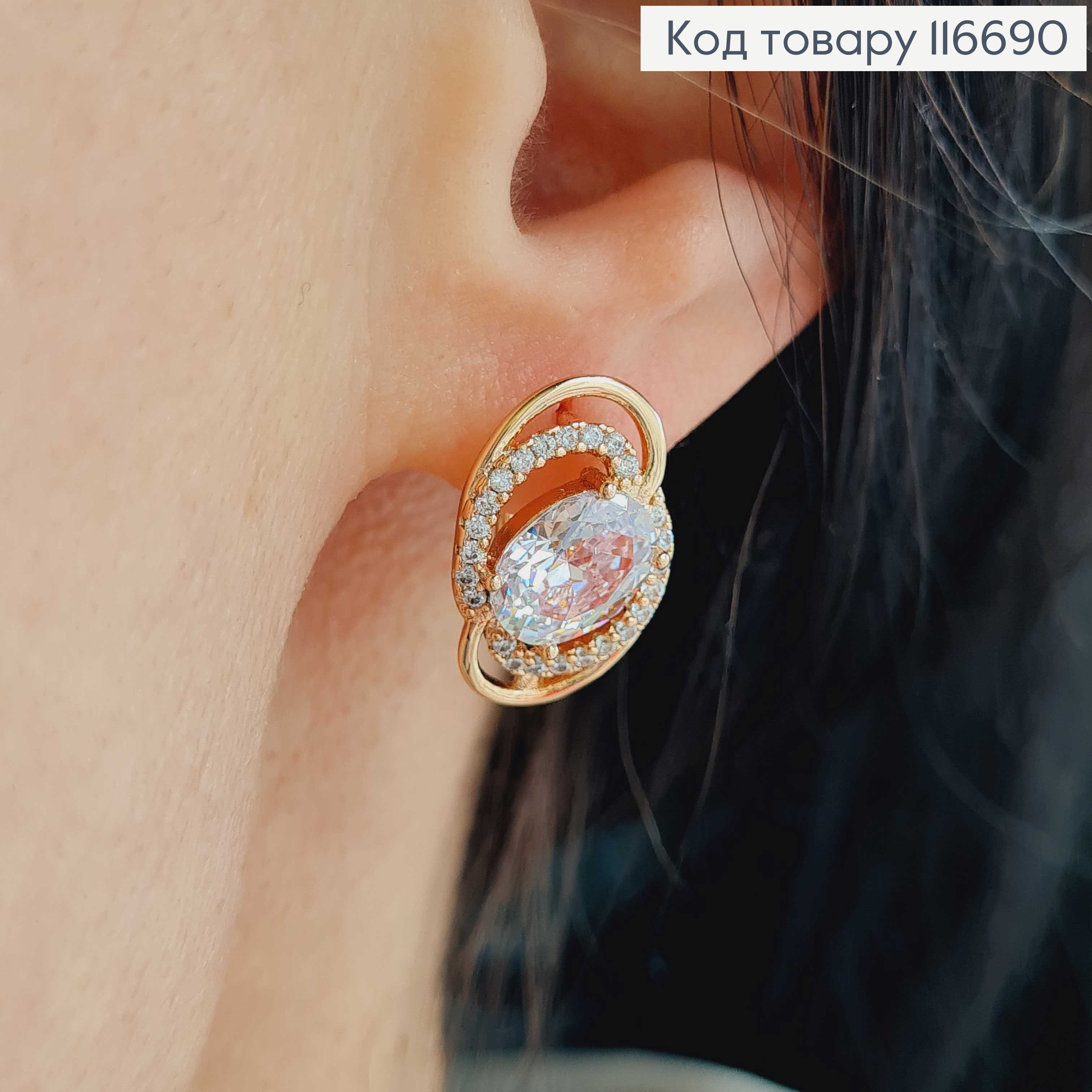 Сережки з Вишуканим Блискучим каменем, 1,6см, англійська застібка, Xuping 18К 110253 фото