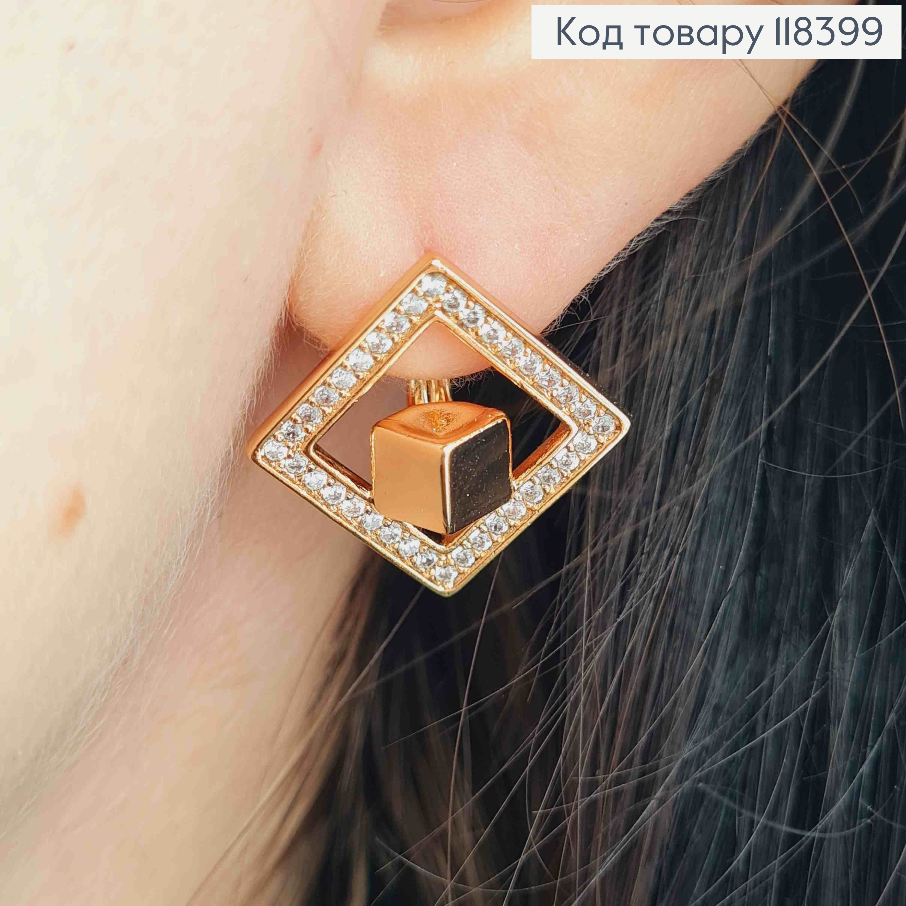 Сережки "Геометричні" з Блискучими камінцями, 2см, англійська застібка, Xuping 18К