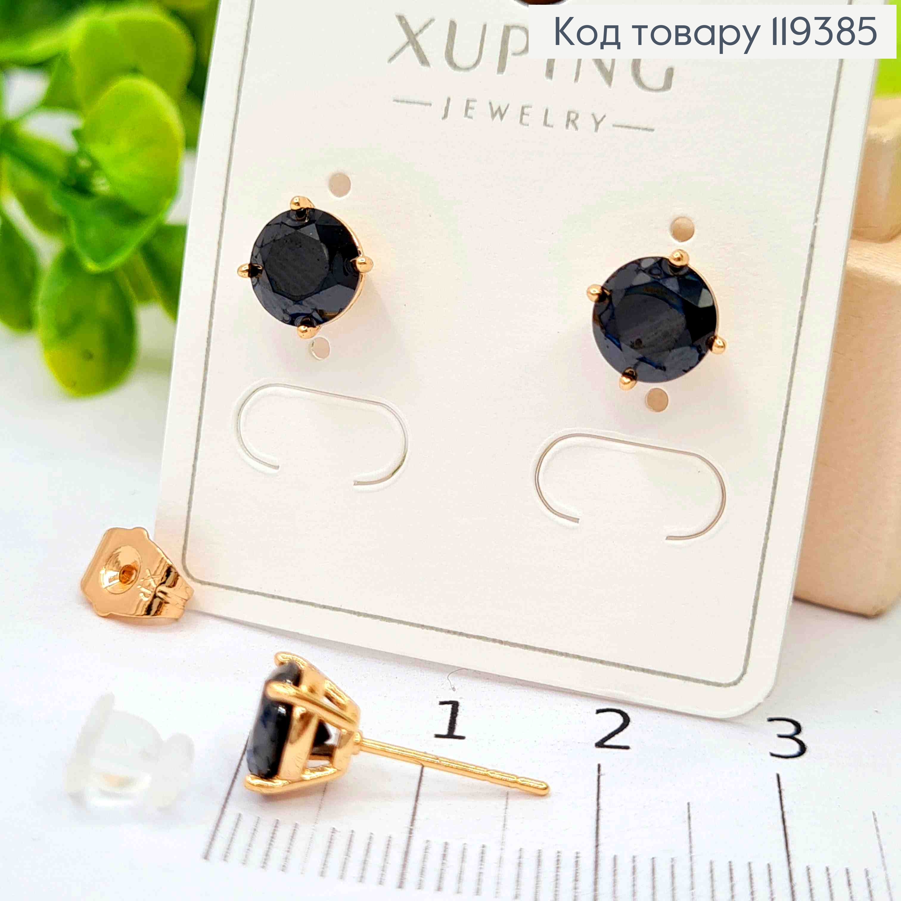 Сережки гвіздки Чорний камінчик, 0,7см, Xuping 18К