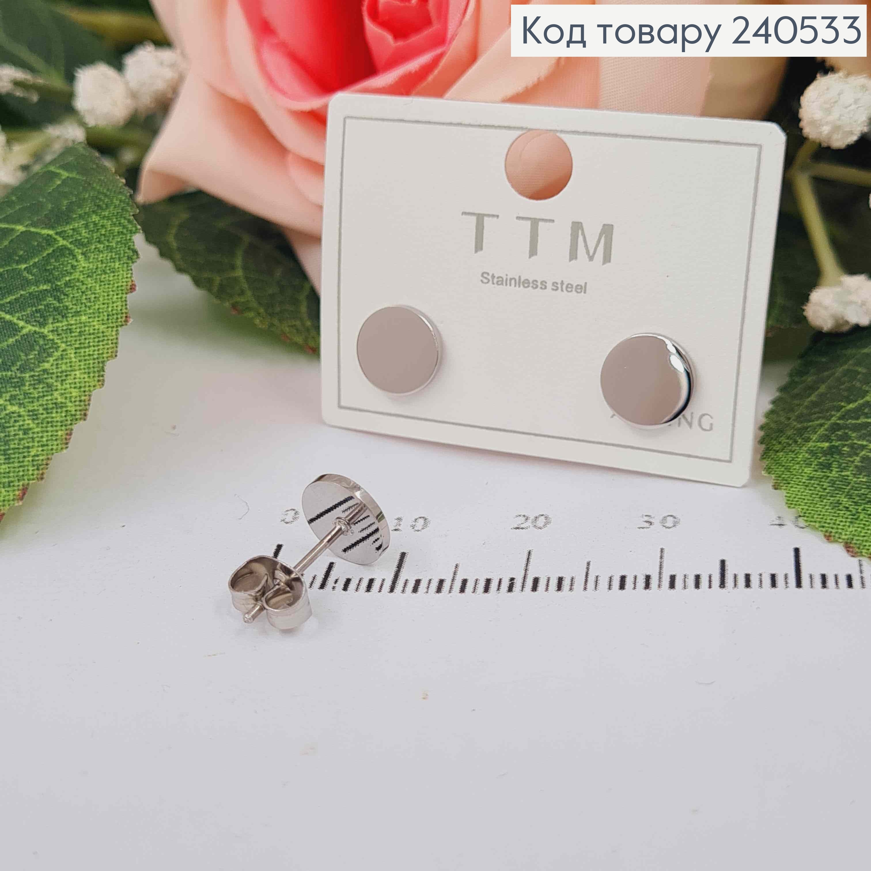 Сережки гвоздики, кругла пластинка, срібного кольору, 7мм, сталь Stainless Steel