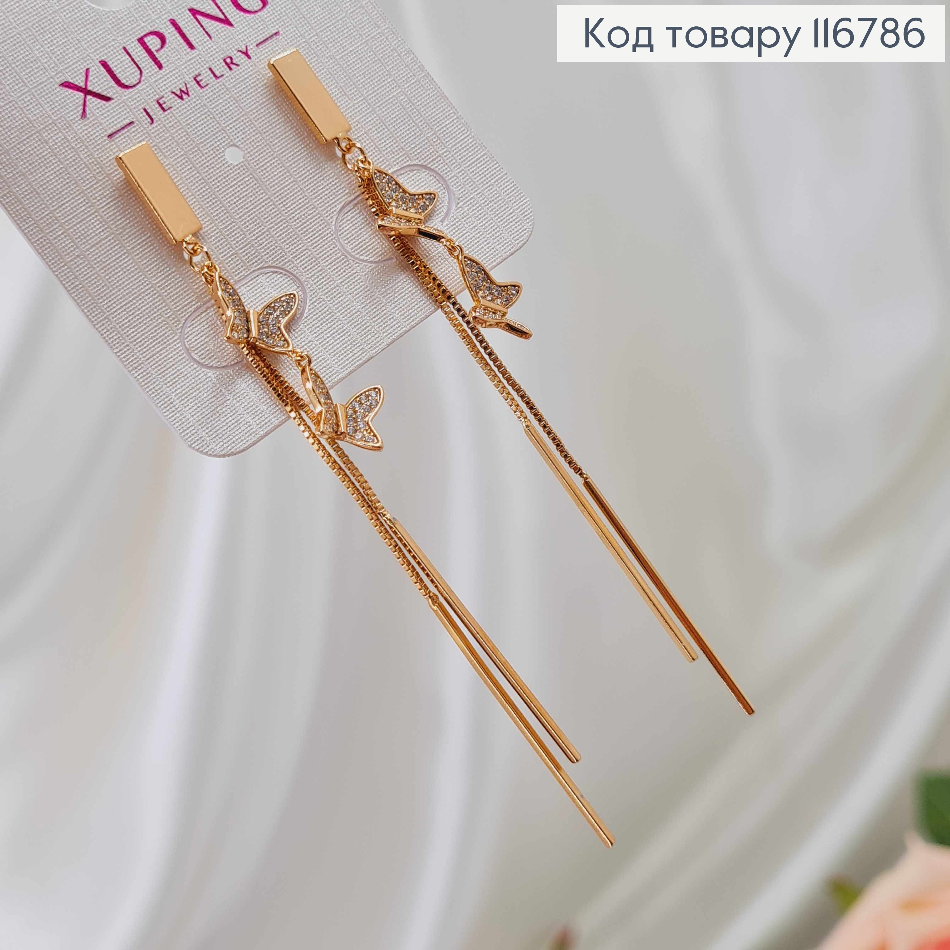 Сережки гвоздики, підвіски Два метелики та наточки, 8см, Xuping 18К