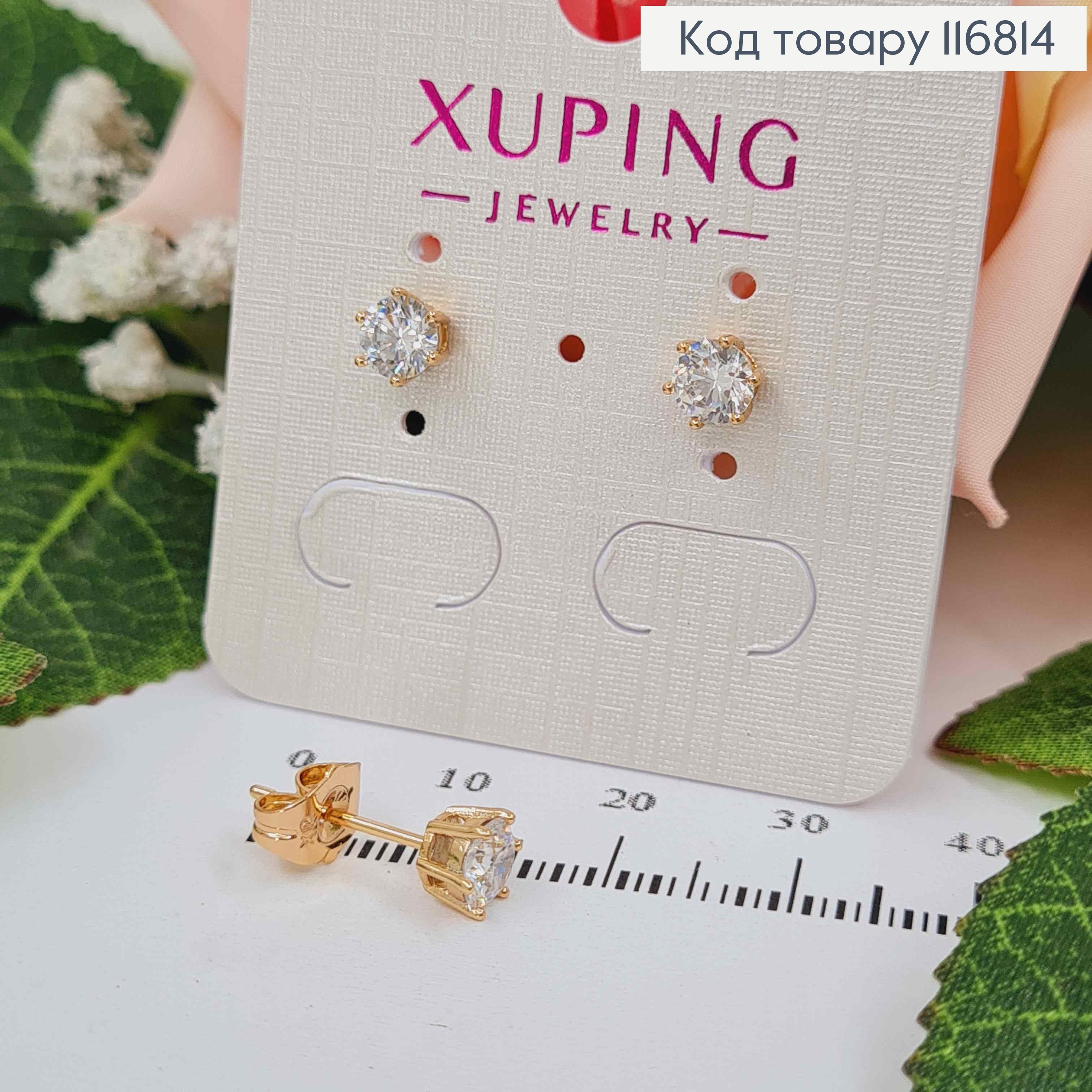 Сережки гвоздики, з Білим камінцем 5мм, Xuping 18К