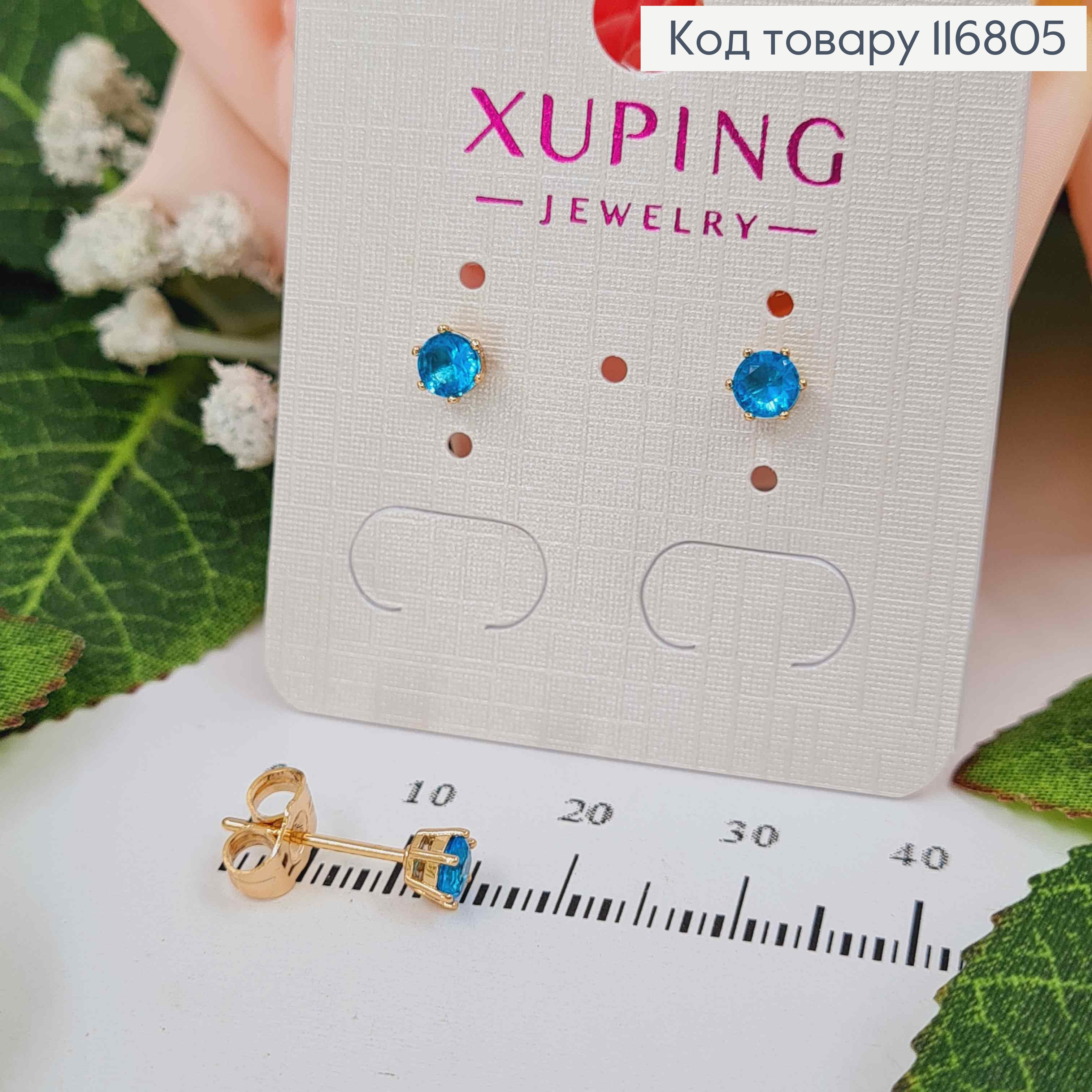 Сережки гвоздики, з Блакитним камінцем, 4мм, Xuping 18K