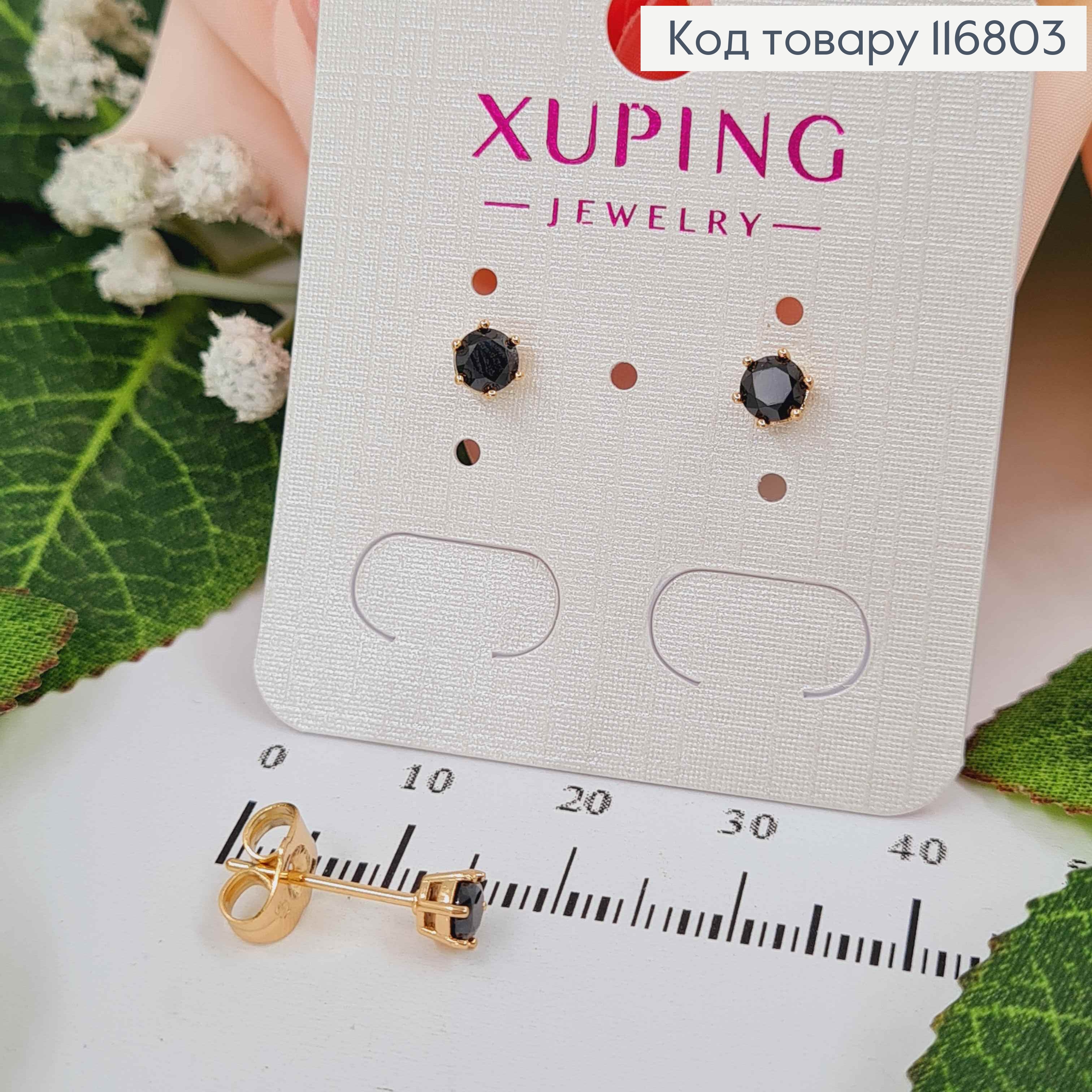 Сережки гвоздики, з Чорним камінцем, 4мм, Xuping 18K
