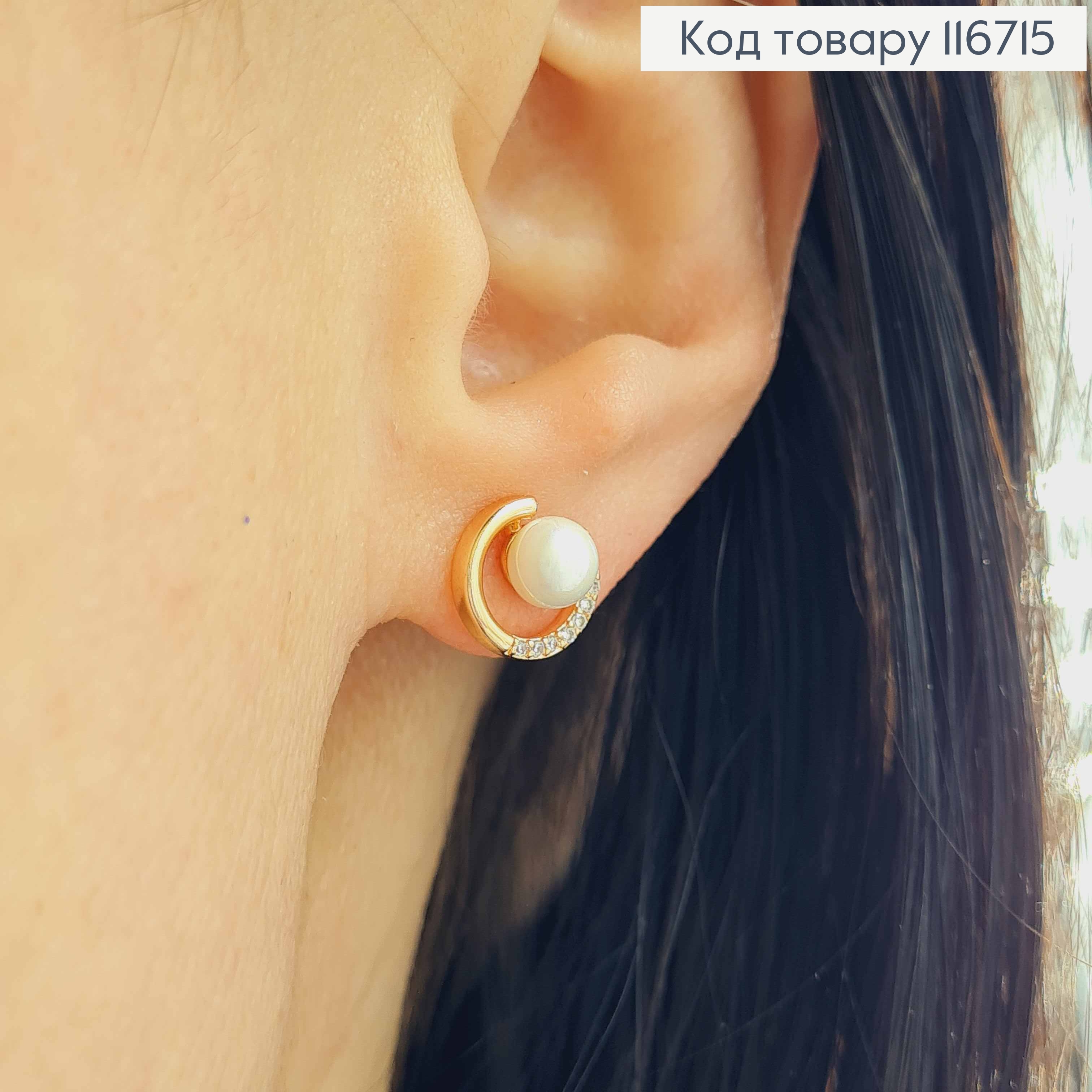 Сережки гвоздики, з перлинкою та обідочком в камінцях, 9мм, Xuping 18K