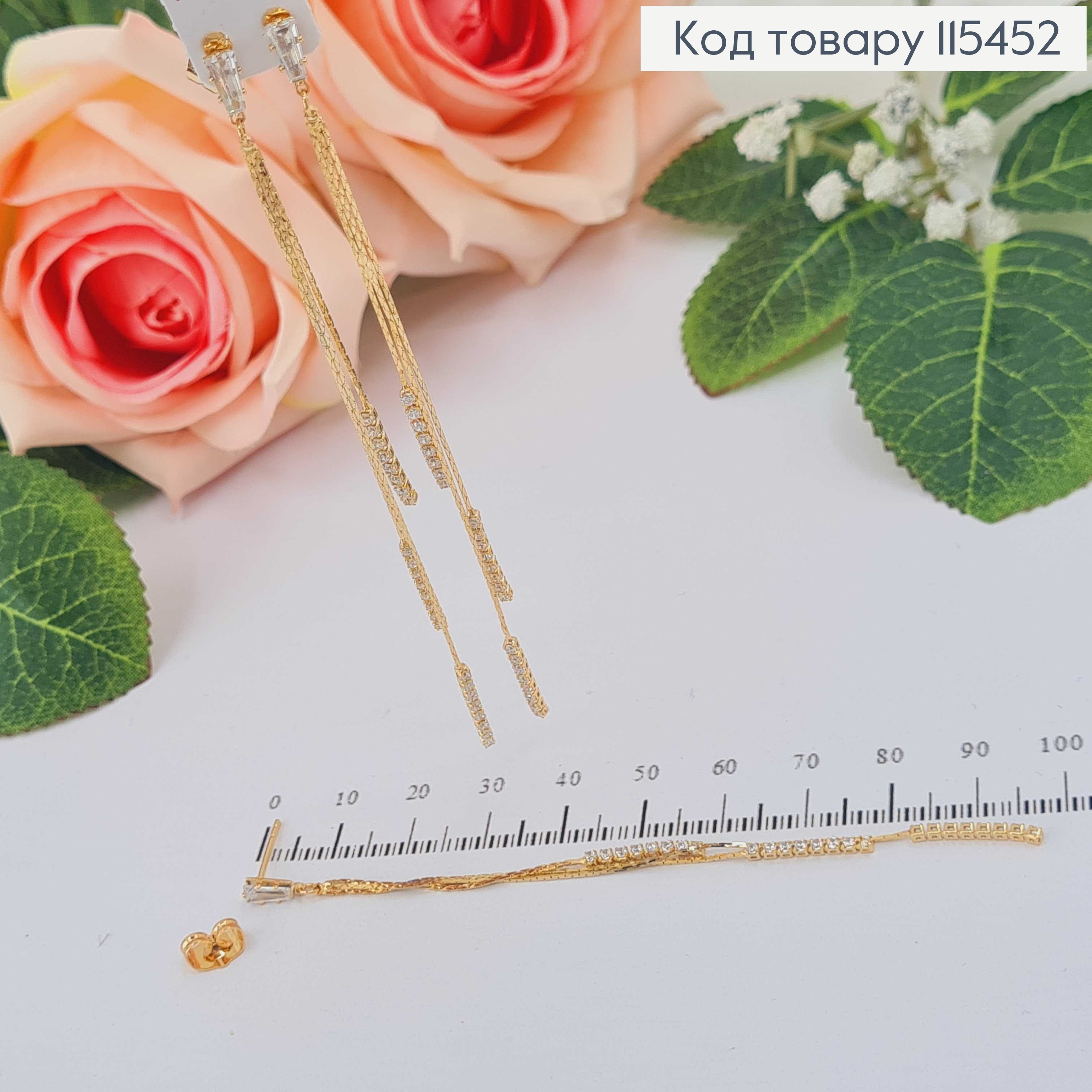 Сережки гвоздики з підвісками 3 ниточками з камінчиками. 9,5см Xuping 18K
