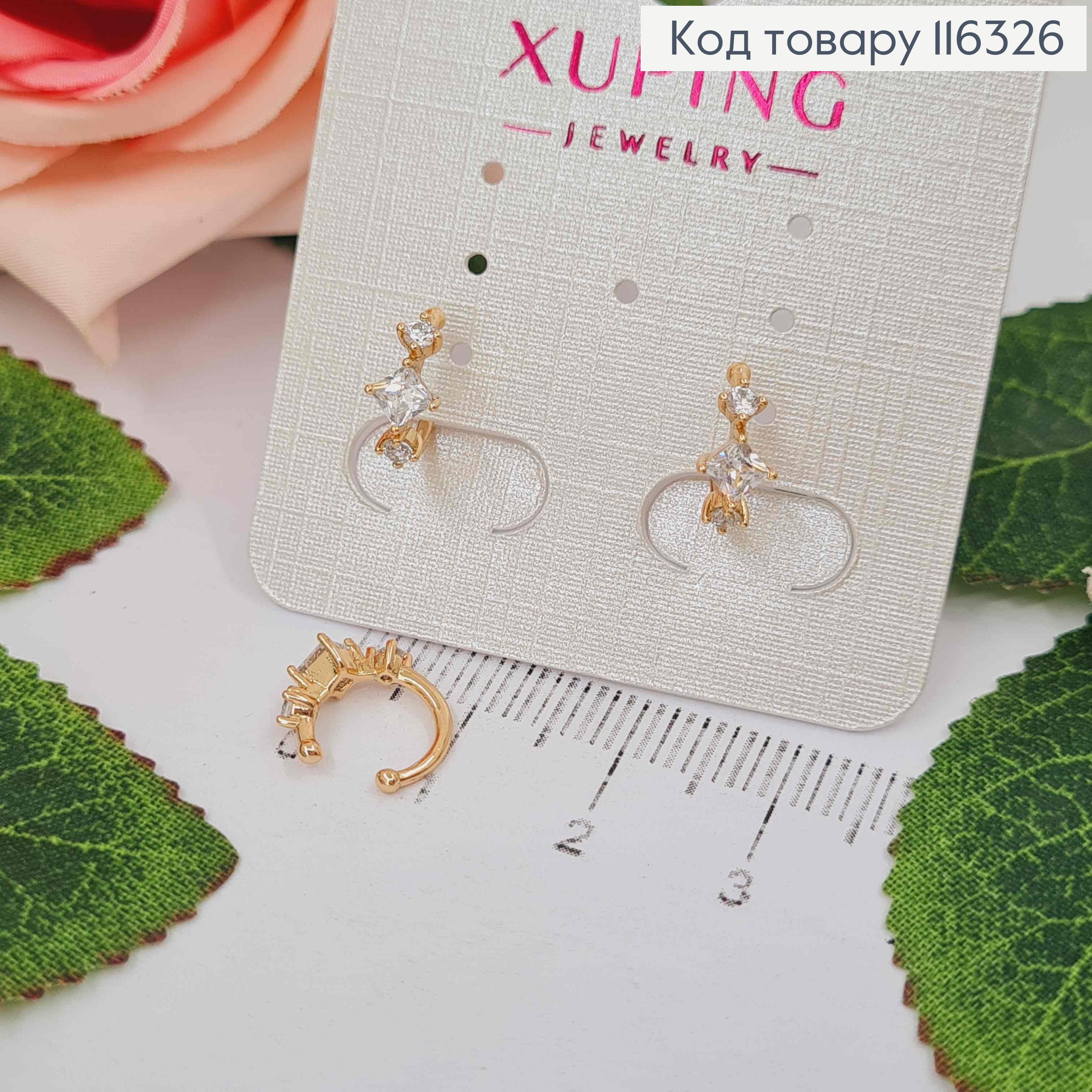 Сережки з квадратним Блискучим каменем, 1,9см, англійська застібка, Xuping 18K 110257 фото