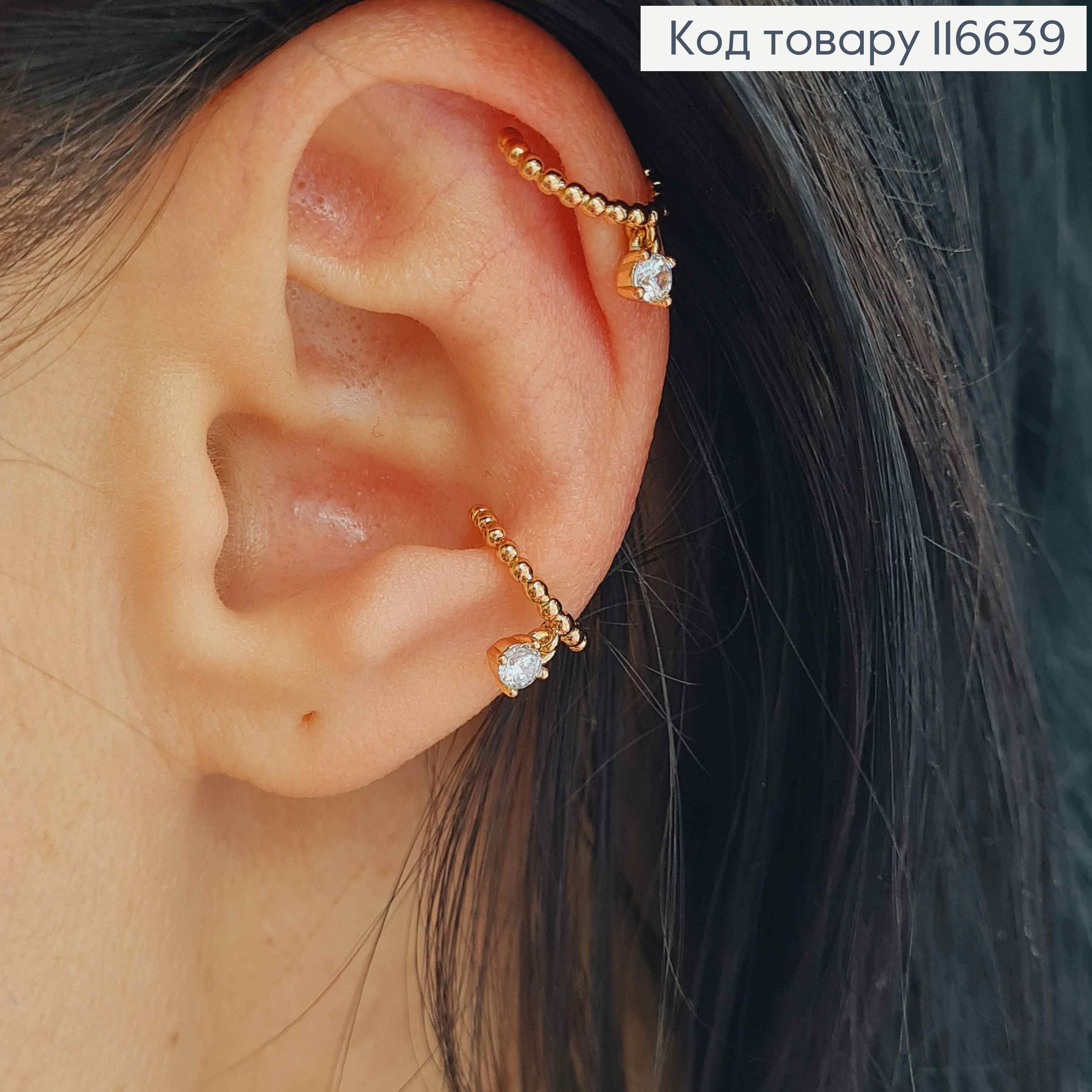 Сережки кафи на хрящ, з маленьких кульок та підвіскою камінцем, Xuping 18K