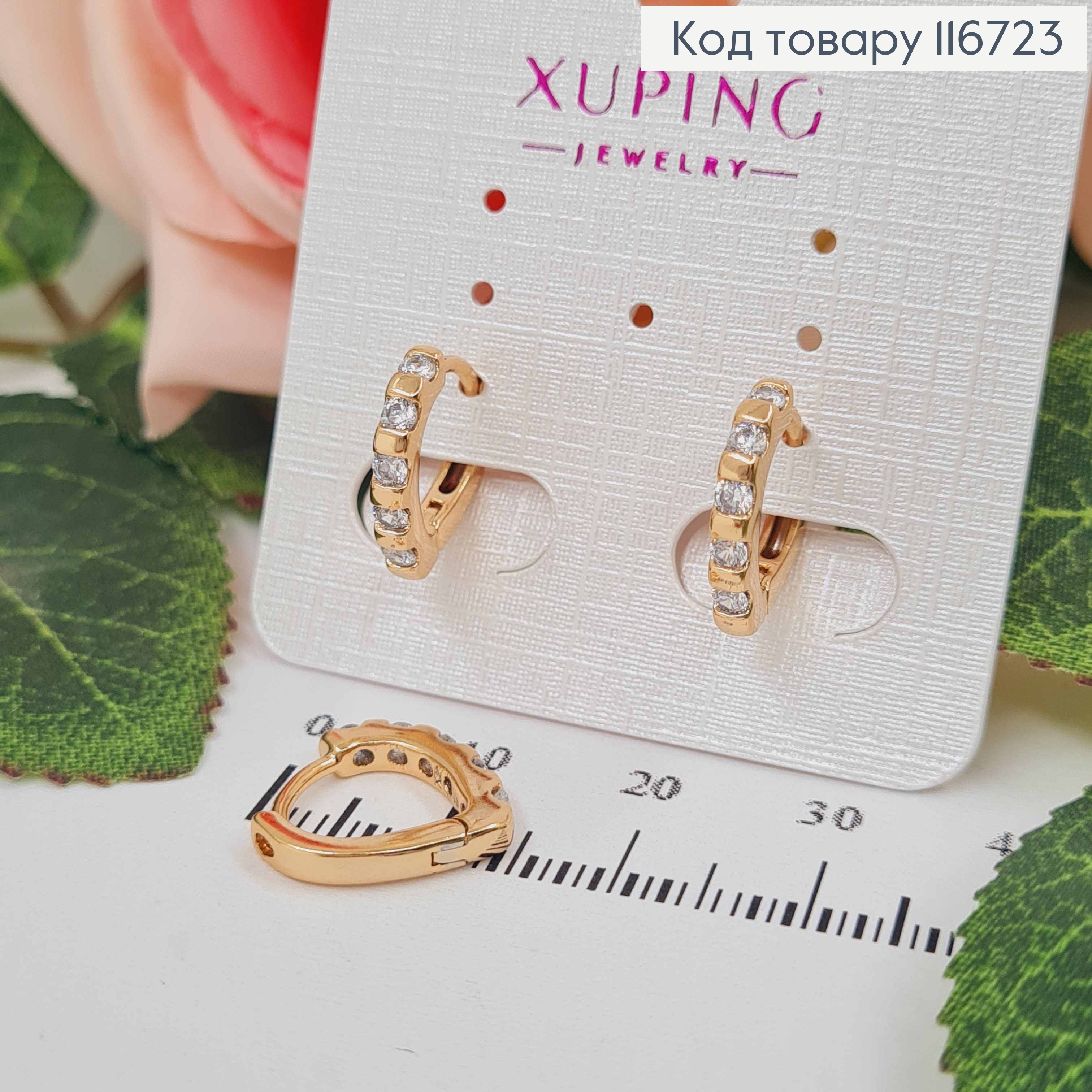 Сережки кільця 1,2см, з лінійкою камінців, Xuping 18К