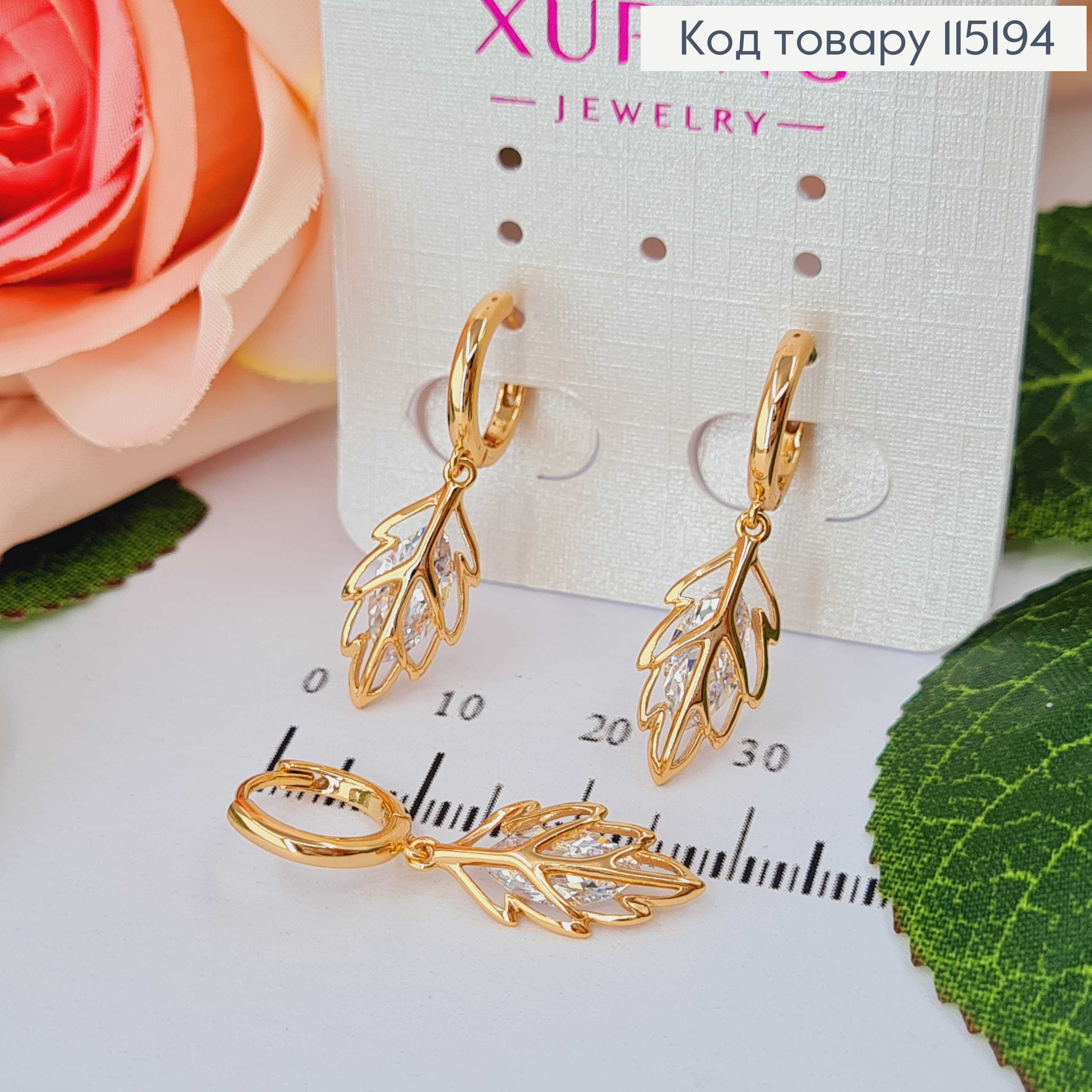 Сережки кільця 1,2см. з підвіскою листочок 1,5см з камінцями Xuping 18K