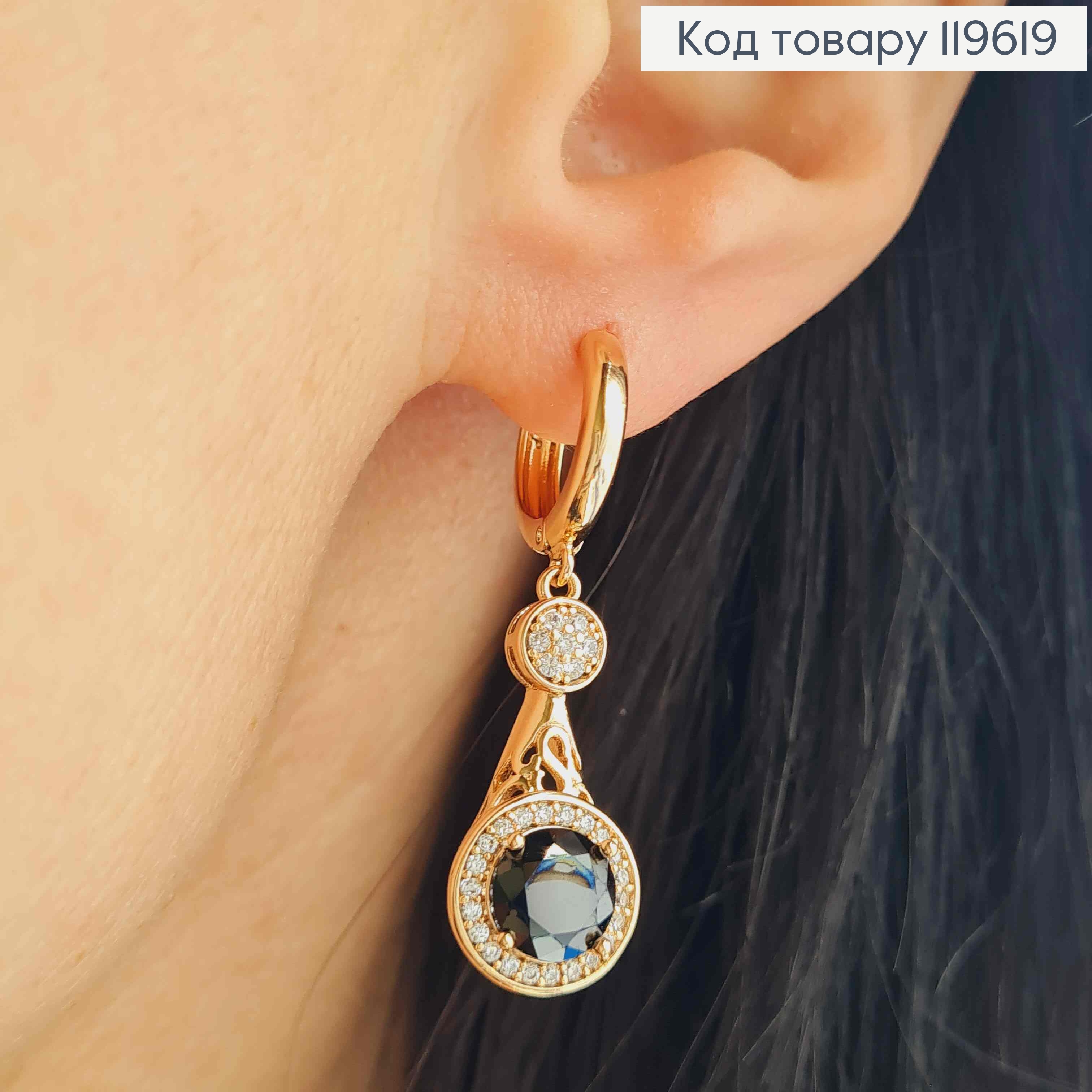 Сережки "Подих вітру" з Блискучими камінцями,  довжина 2,4см, англійська застібка, Xuping 18К 110208 фото