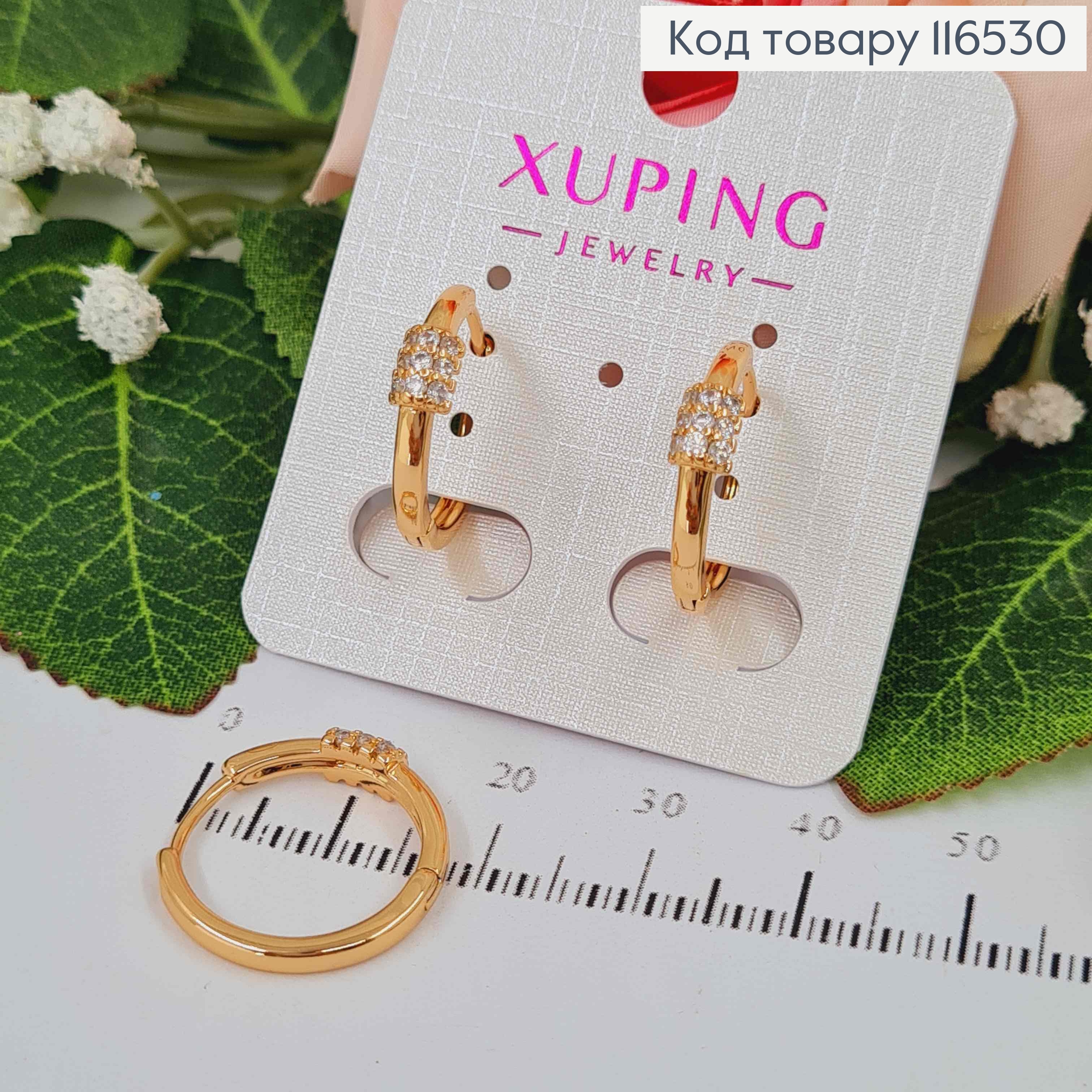 Сережки кільця 1,7см, з шайбочкою в камінцях, Xuping 18K