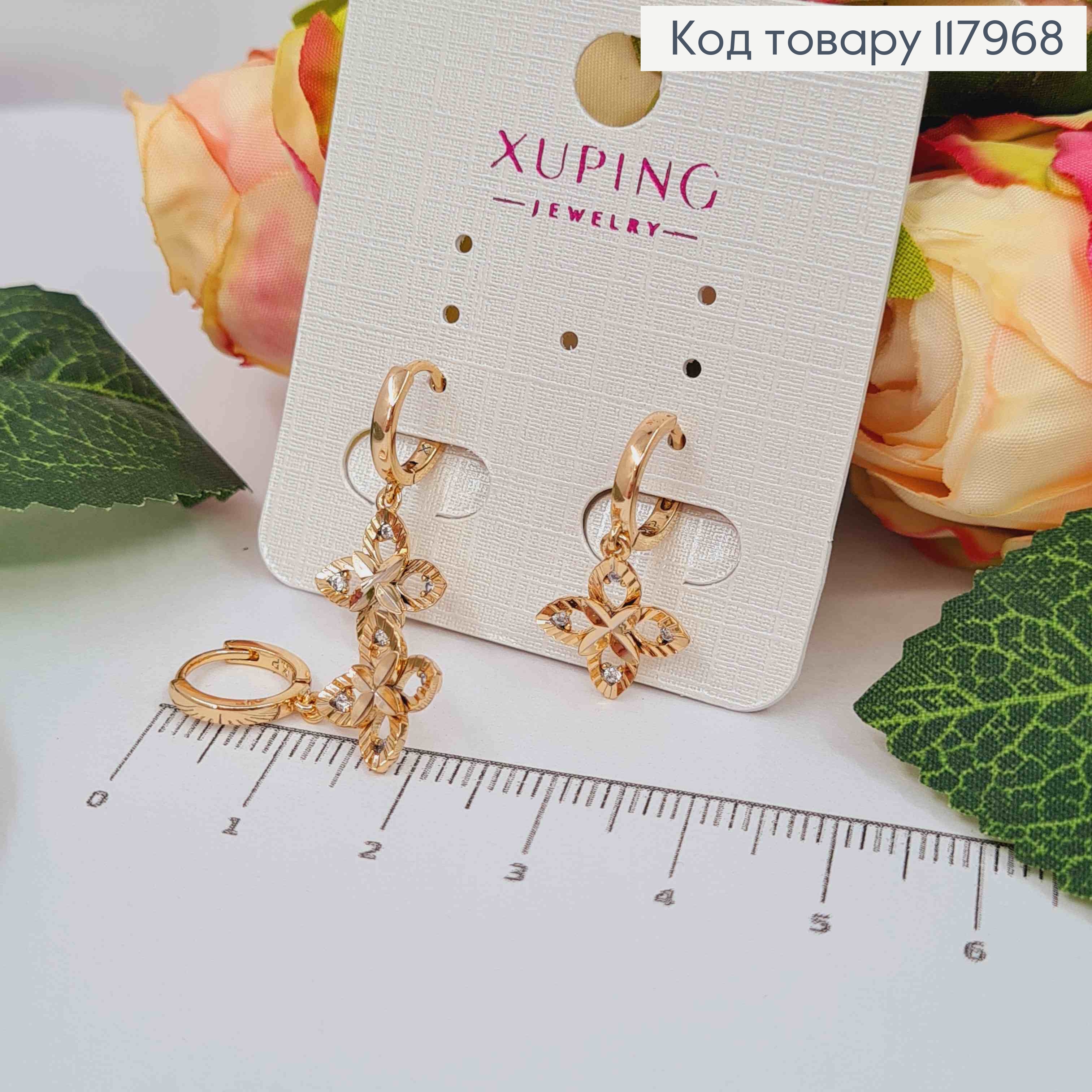 Сережки кільця з підвісними ланцюжками в камінця та з Метеликом, розмір 1,1+7,5см,  Xuping 18K 110247 фото