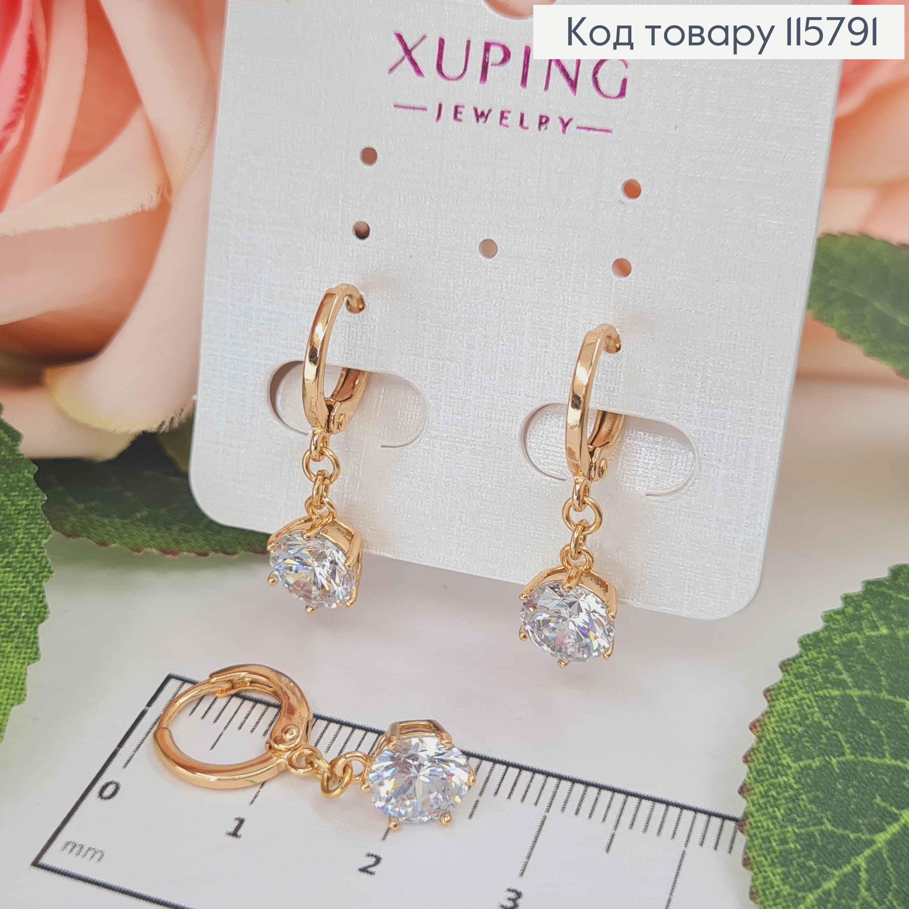 Сережки з Вишуканим Блискучим каменем, 1,6см, англійська застібка, Xuping 18К 110253 фото