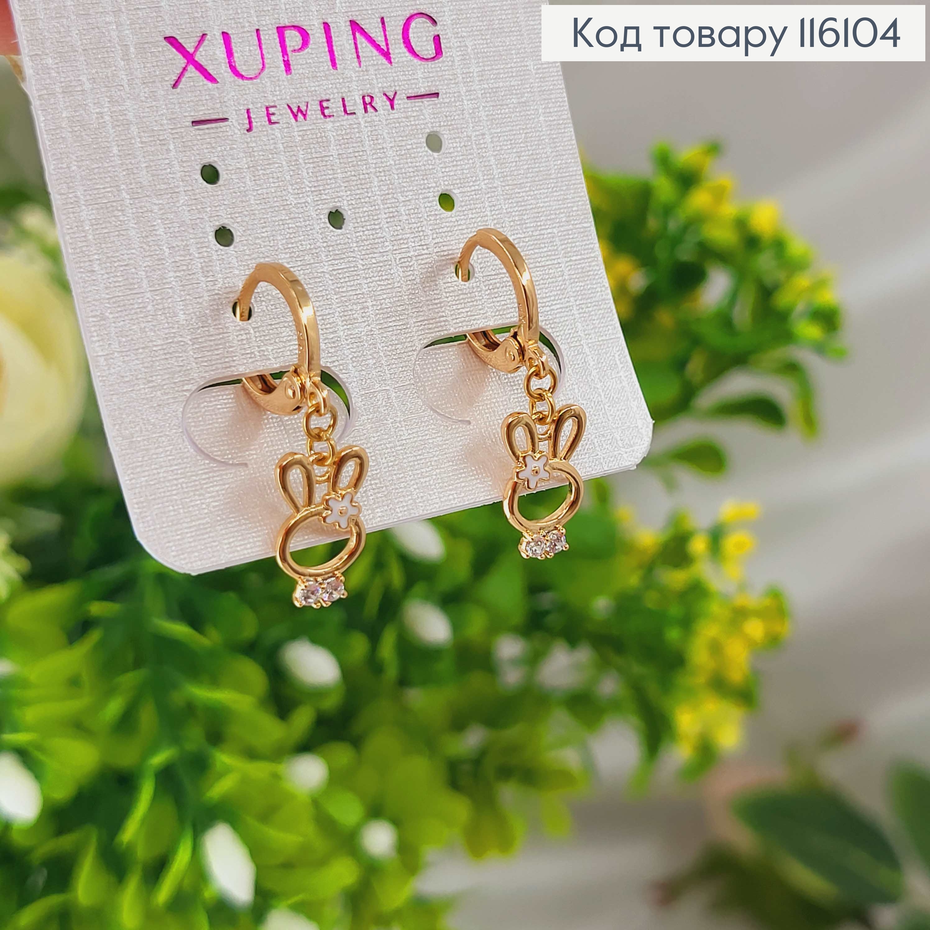 Сережки кільця 1см, з підвіскою Зайчам, з камінцями, 1,5см, Xuping 18K