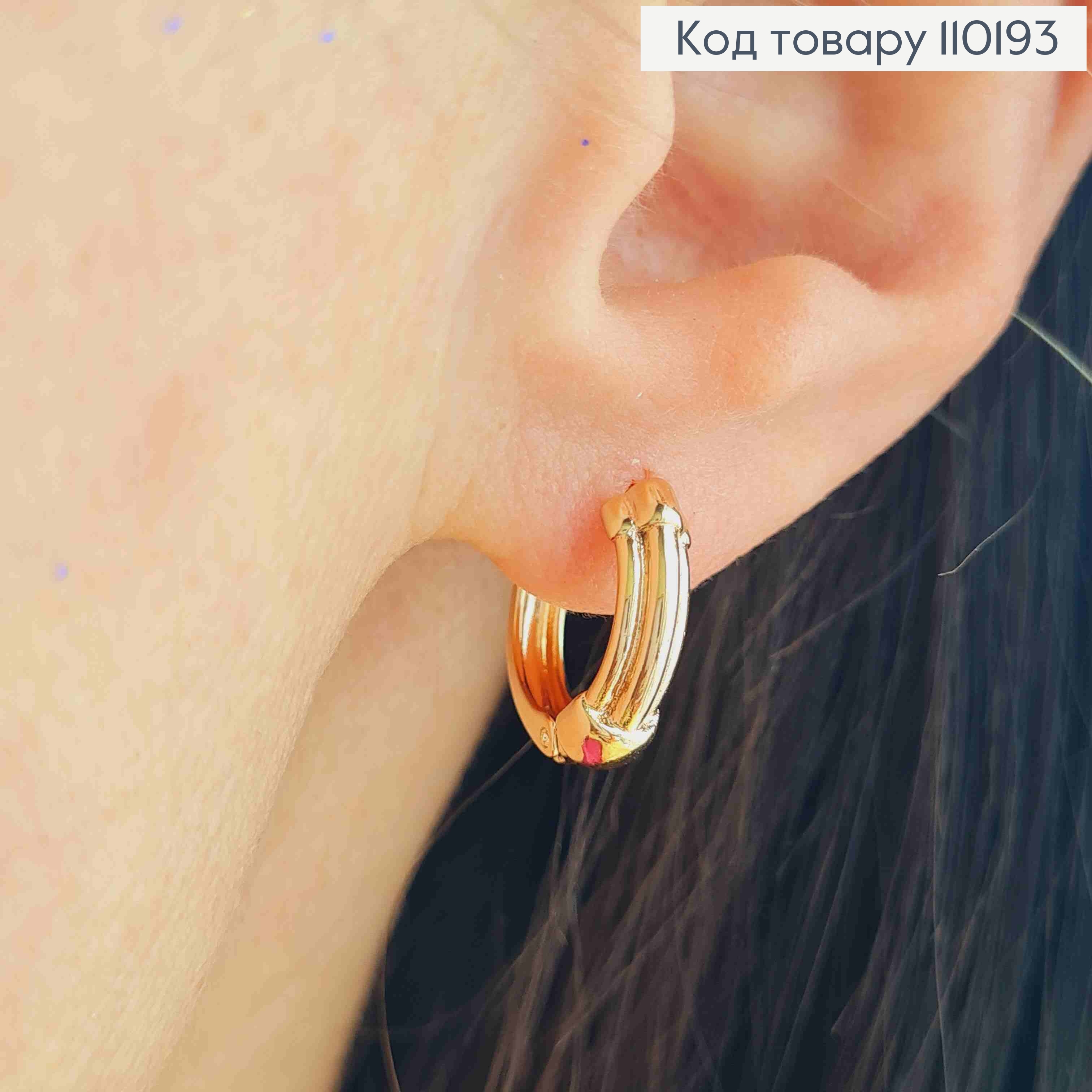 Сережки кільця "Овальні" фактурні,  ширина 2мм,  довжина 1,7см, Xuping 18К 110197 фото