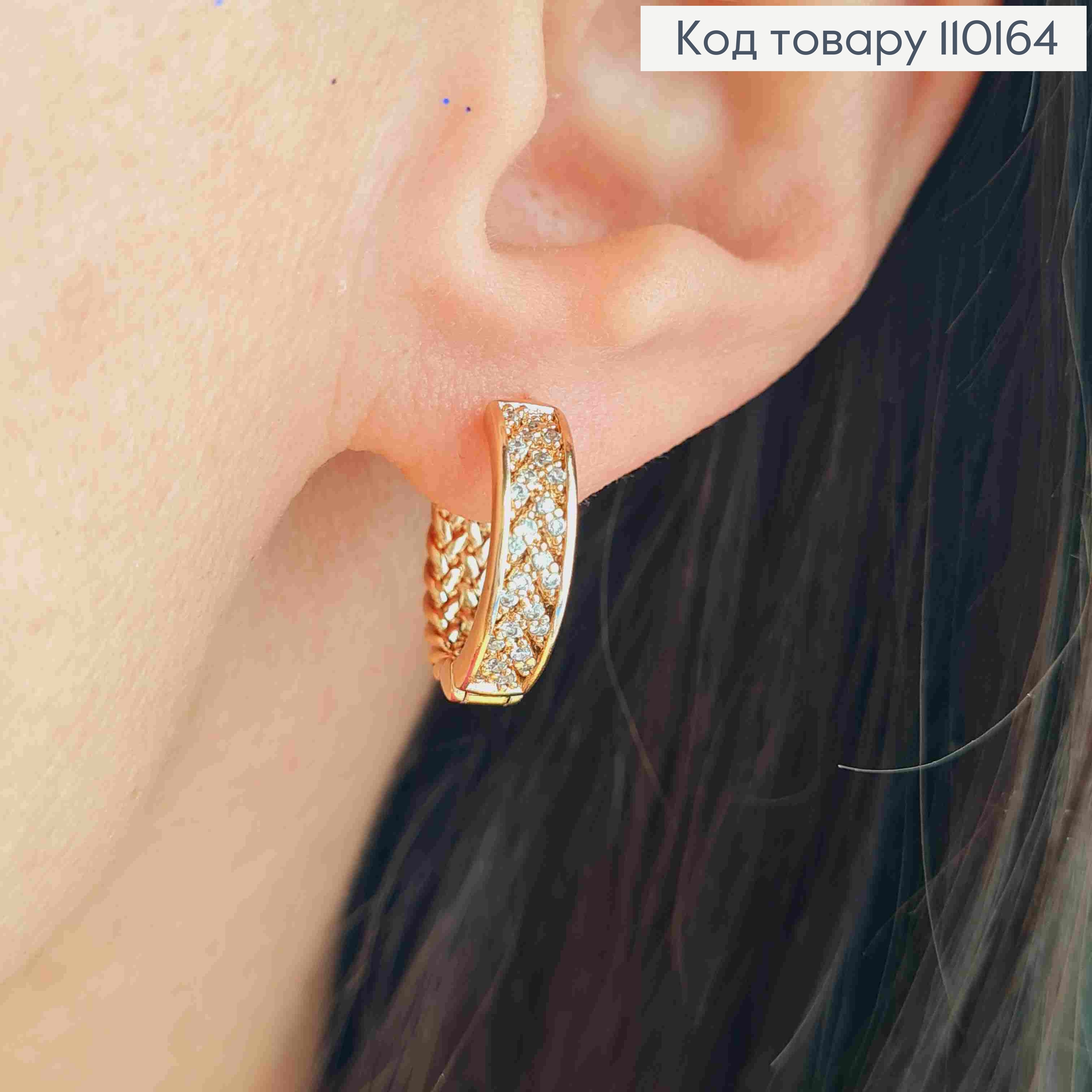 Сережки "Х" прикрашені Блискучими камінцями,  довжина 1,6см, англійська застібка, Xuping 18К 110206 фото