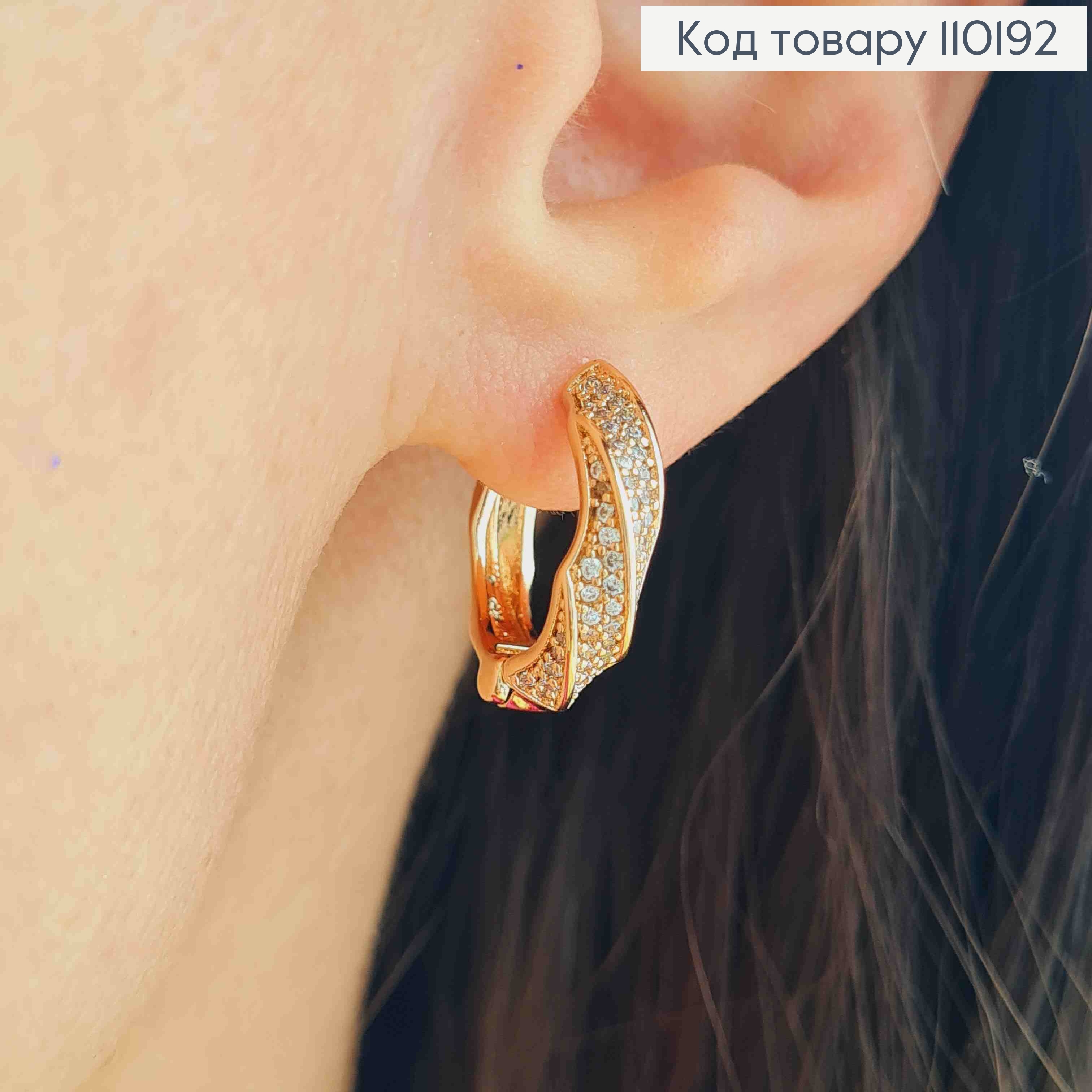 Сережки кільця Кручені прикрашені блискучими камінцями, діаметр 1,5см, Xuping 18К