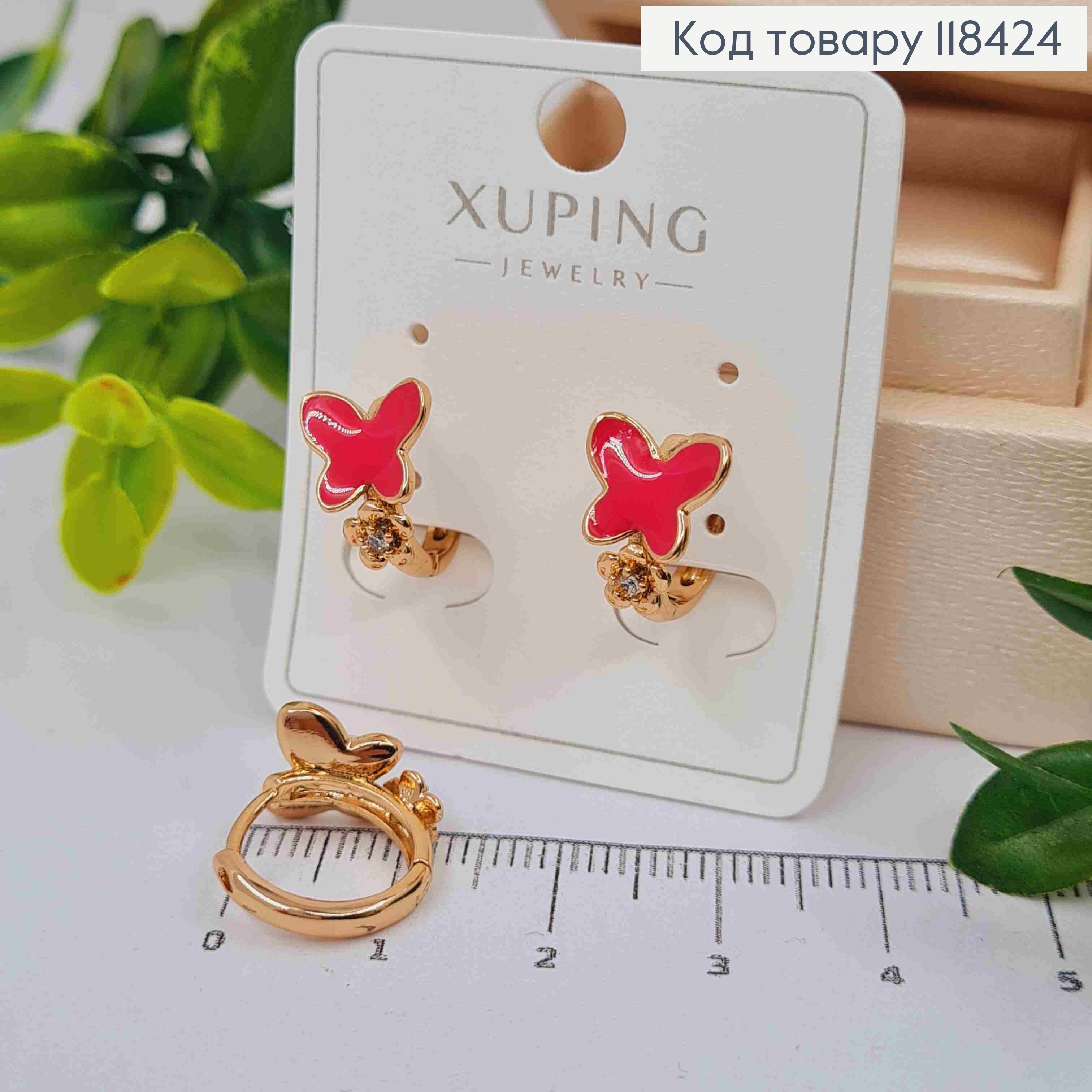 Сережки кільця "Метелик" на квітці, з Рожевою емаллю, діаметр 1,3см, Xuping 18К