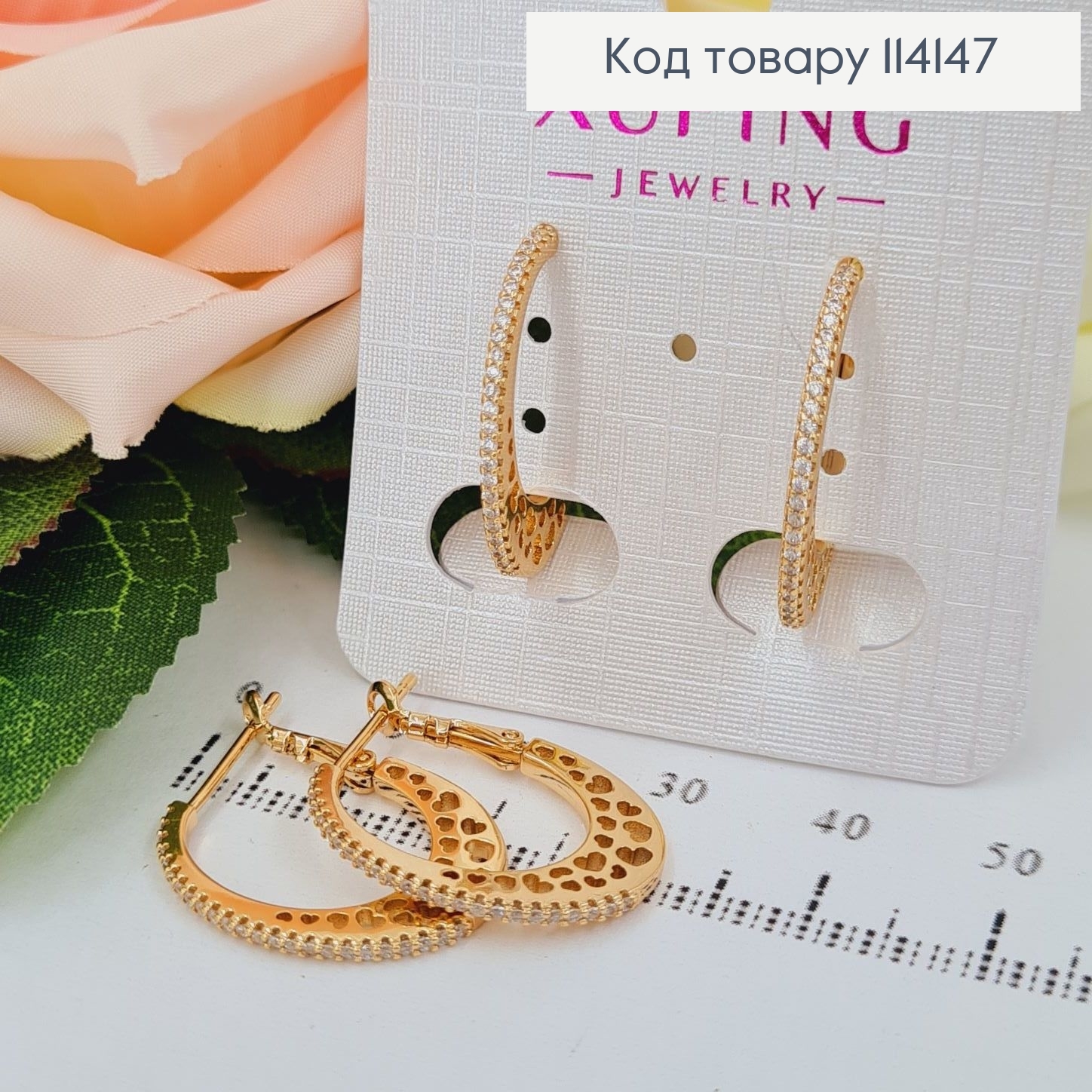 Сережки кільця овальні 2см в камінцях Xuping 18K