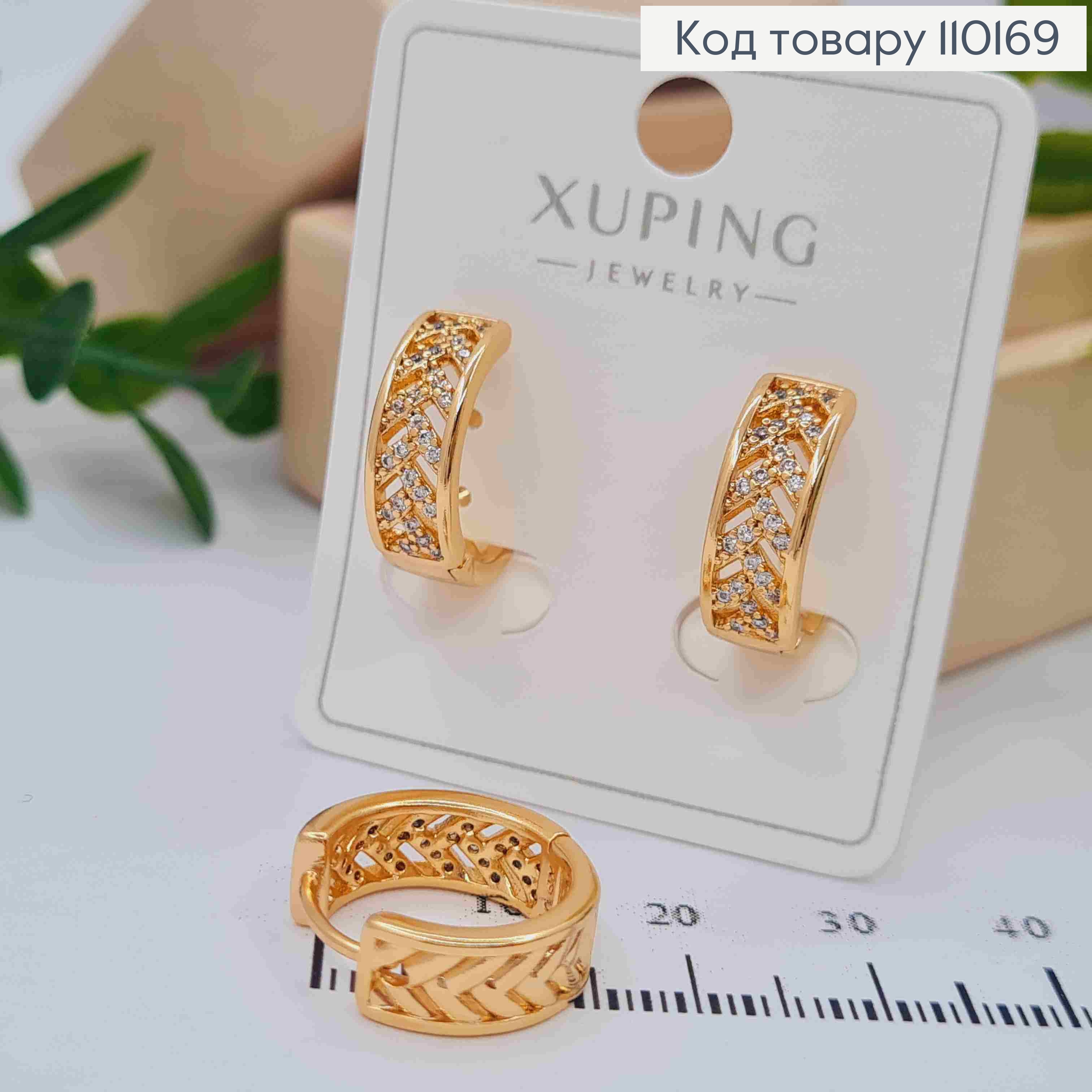 Сережки "Х" прикрашені Блискучими камінцями,  довжина 1,6см, англійська застібка, Xuping 18К 110206 фото