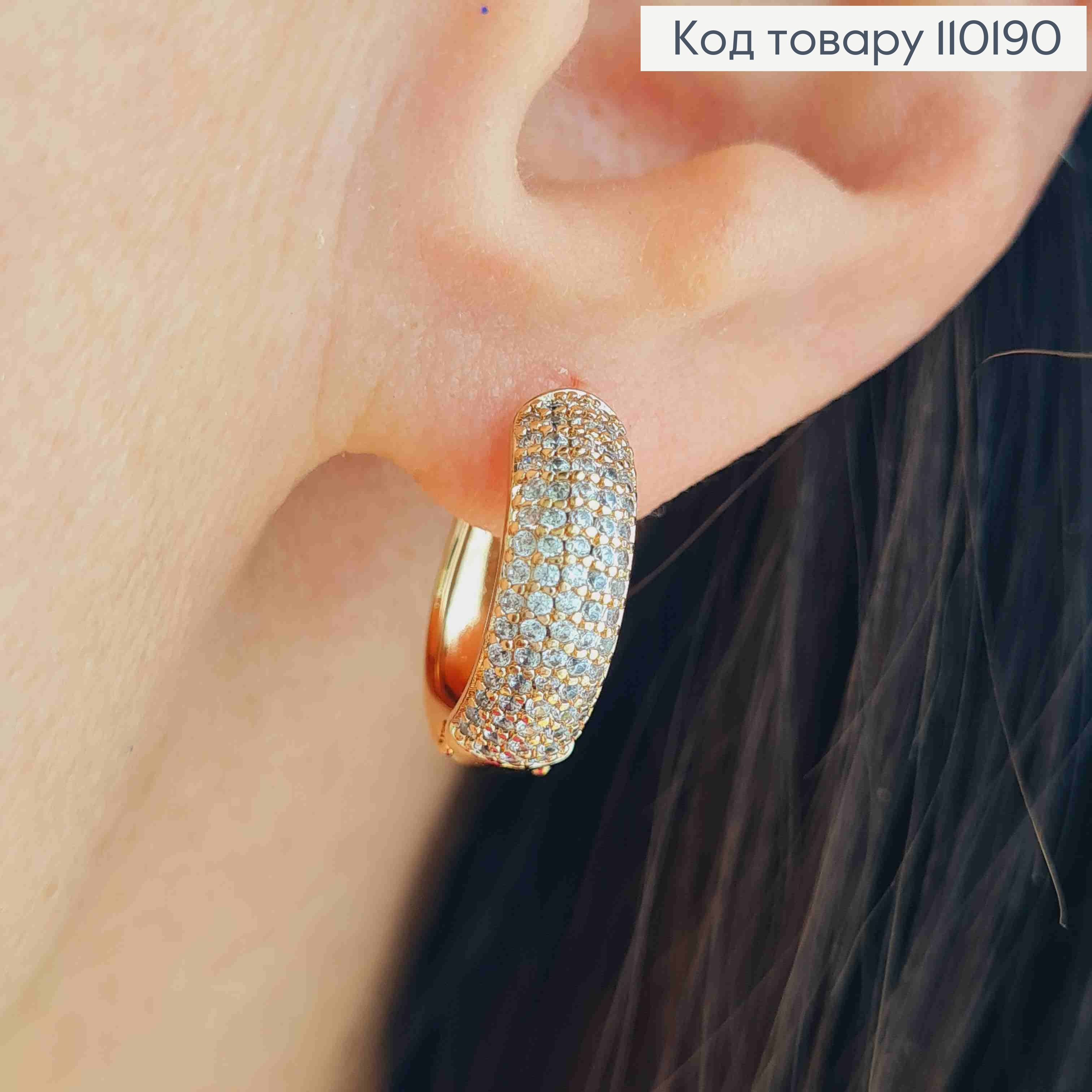 Сережки кільця "Овальні" прикрашені Блискучими камінцями, ширина 7мм,  довжина 1,7см, Xuping 18К 110198 фото