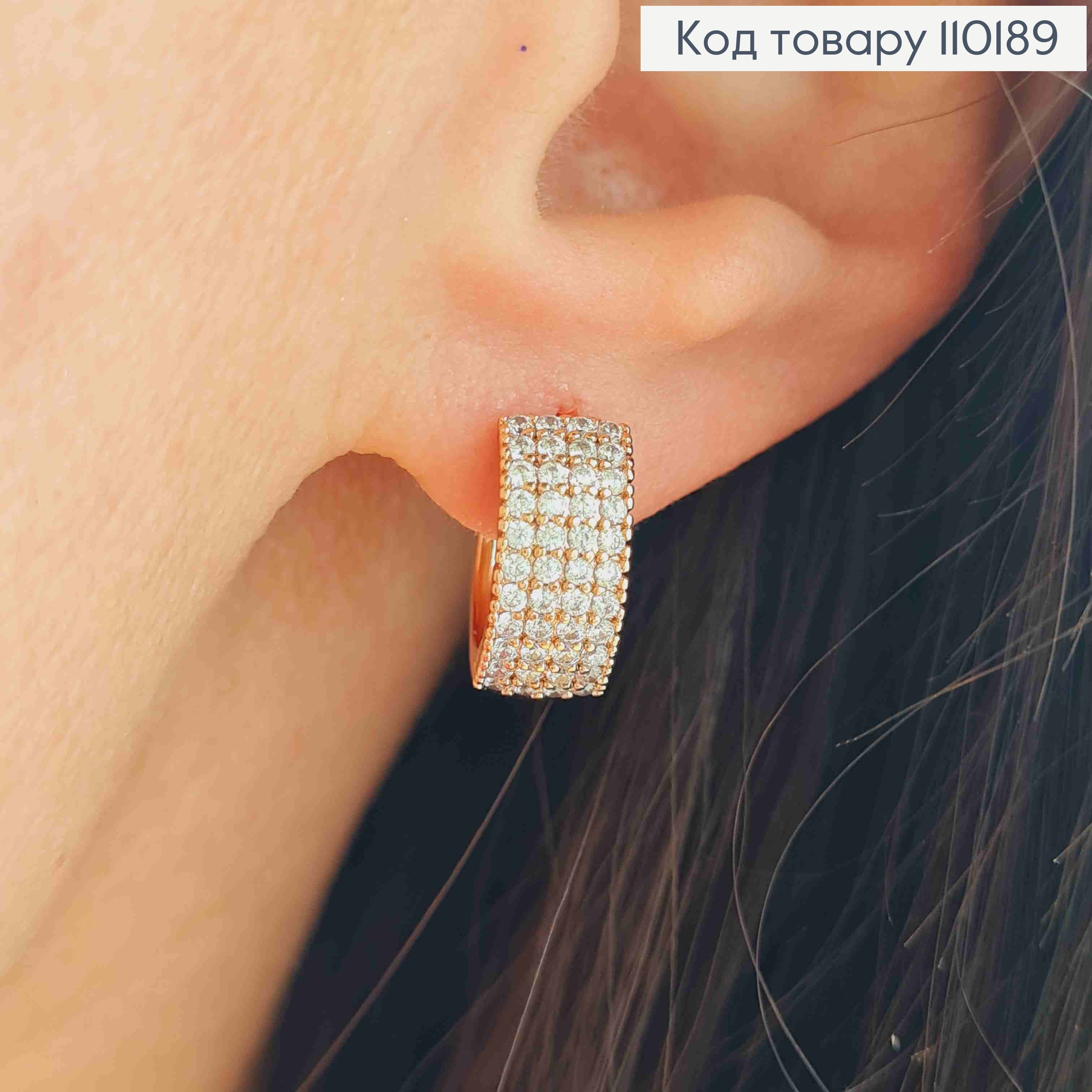 Сережки кільця "Прямокутні" прикрашені Блискучими камінцями,  довж2,4см, застібка шпилька,Xuping 18К 110199 фото
