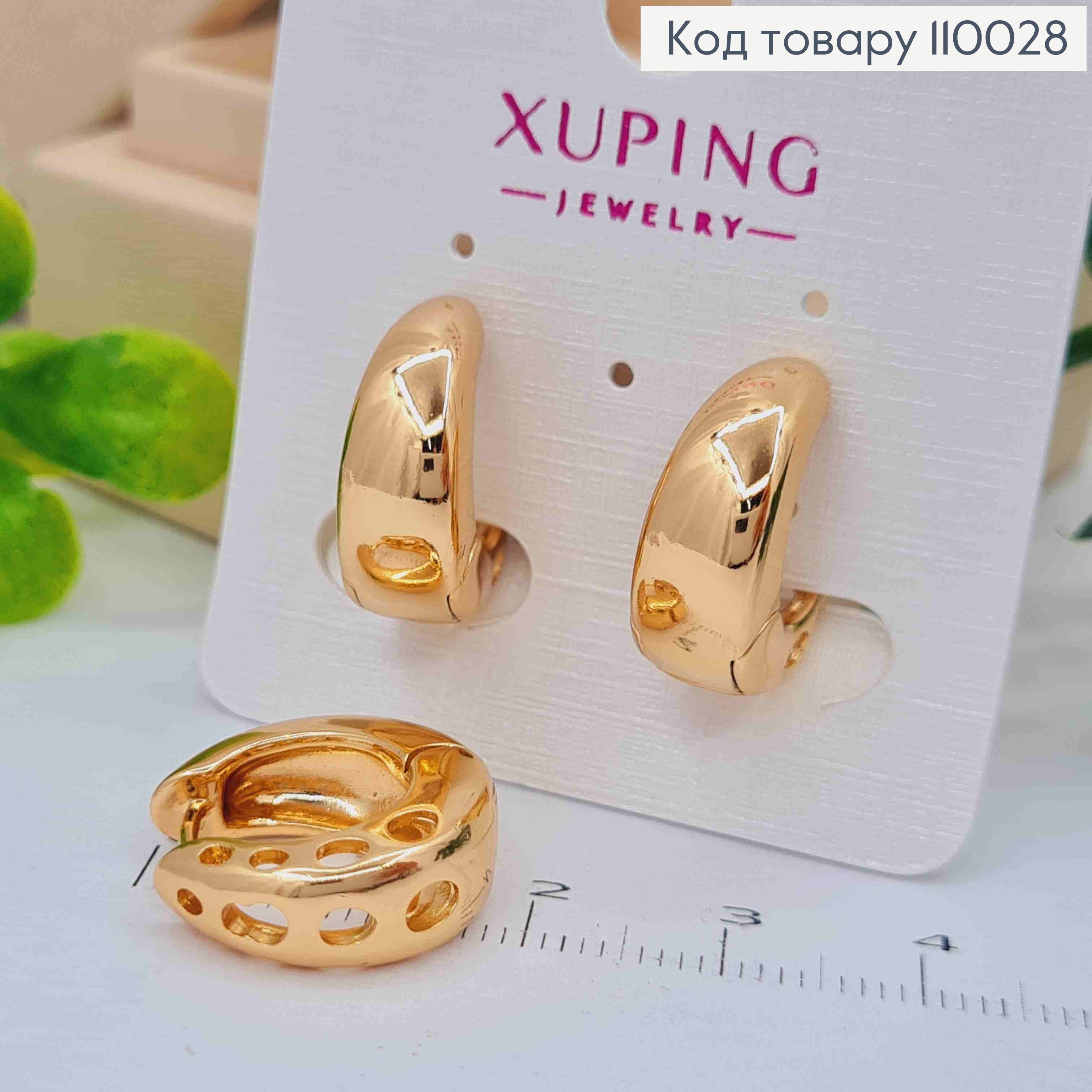 Сережки кільця розширені до низу, діаметр 1,9см, Xuping 18К