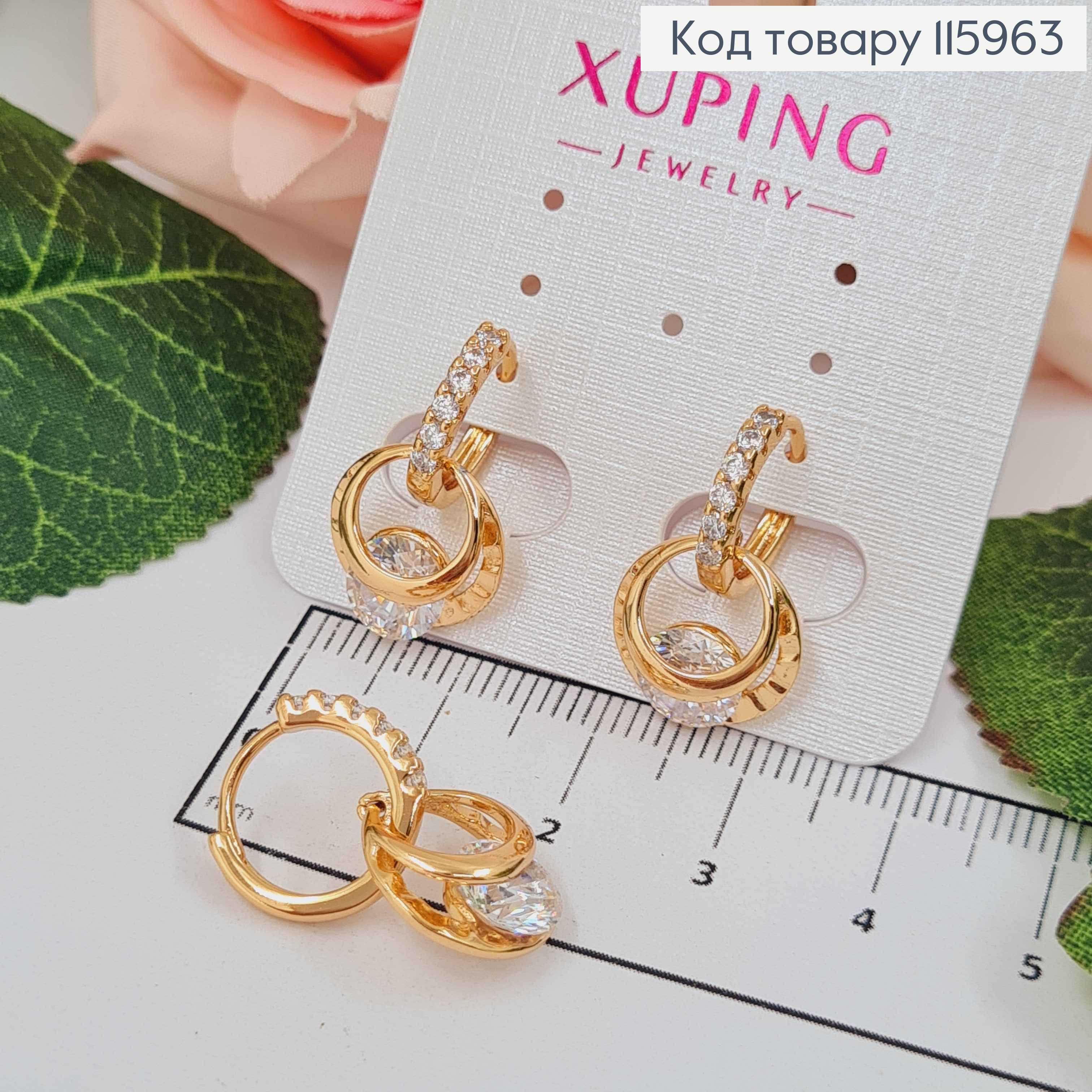 Сережки з Вишуканим Блискучим каменем, 1,6см, англійська застібка, Xuping 18К 110253 фото