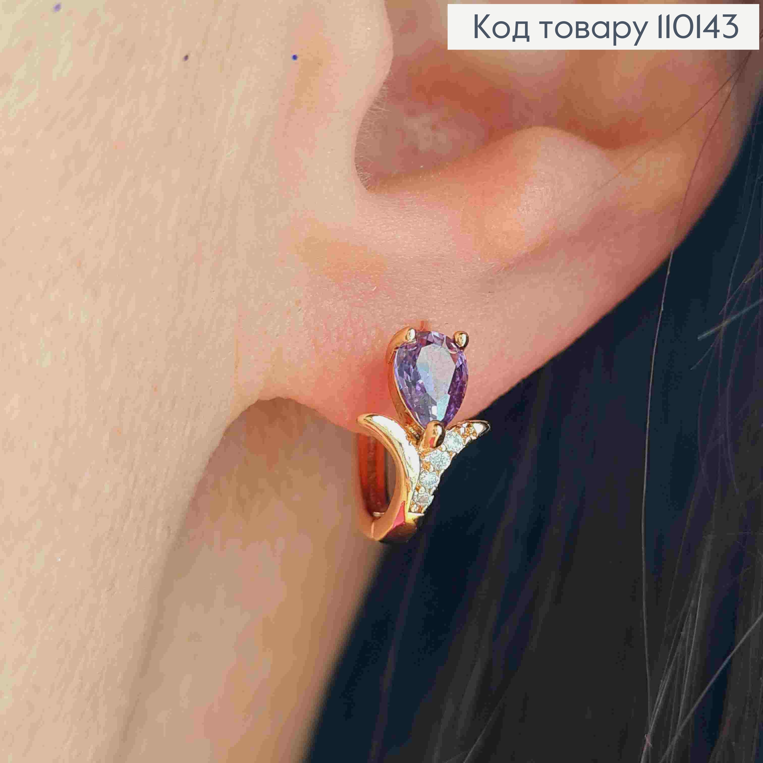 Сережки кільця з Фіолетовим каменем, діаметр 1,3см, Xuping 18К