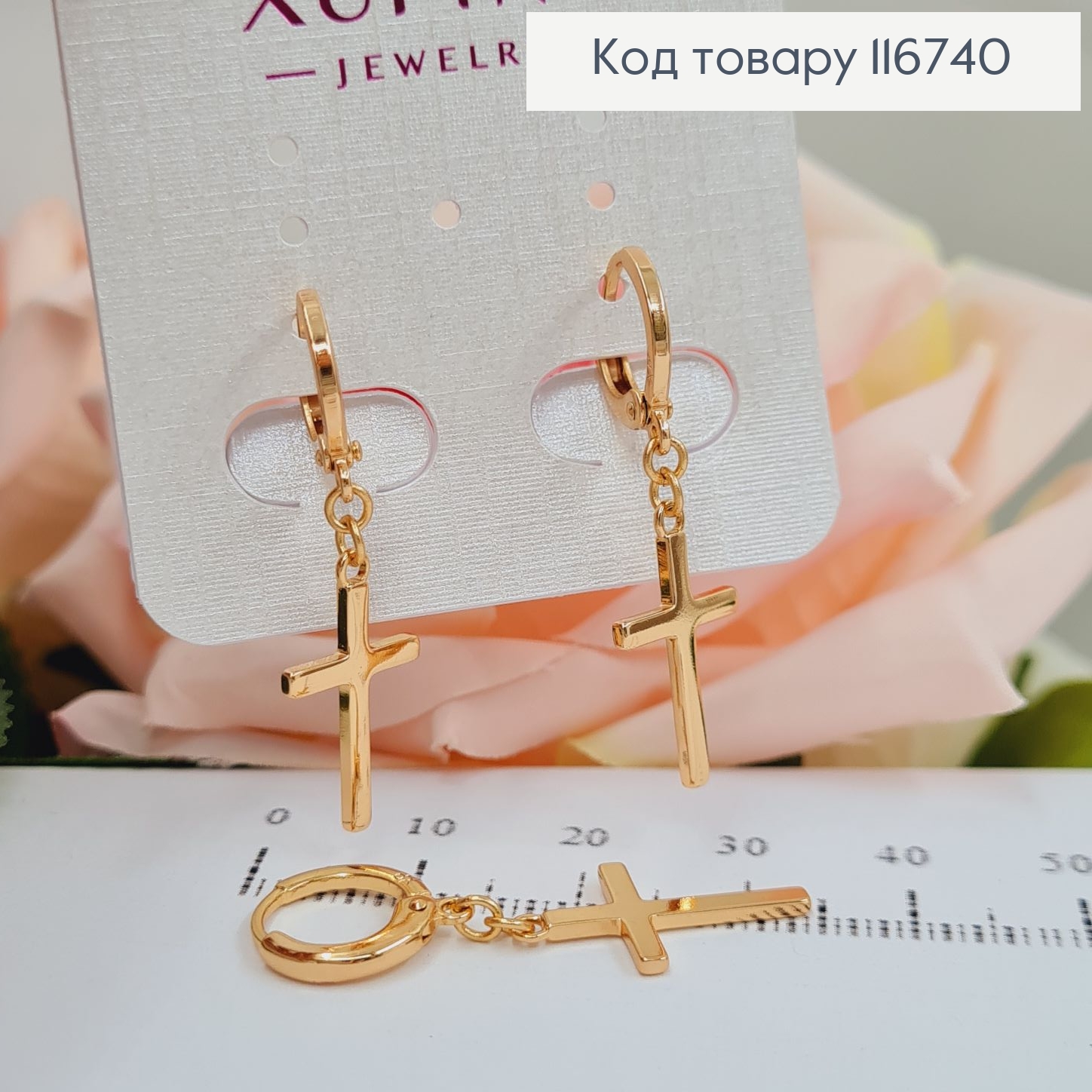 Сережки Кільця, з підвісками Хрестиками, 1,7см, Xuping 18K