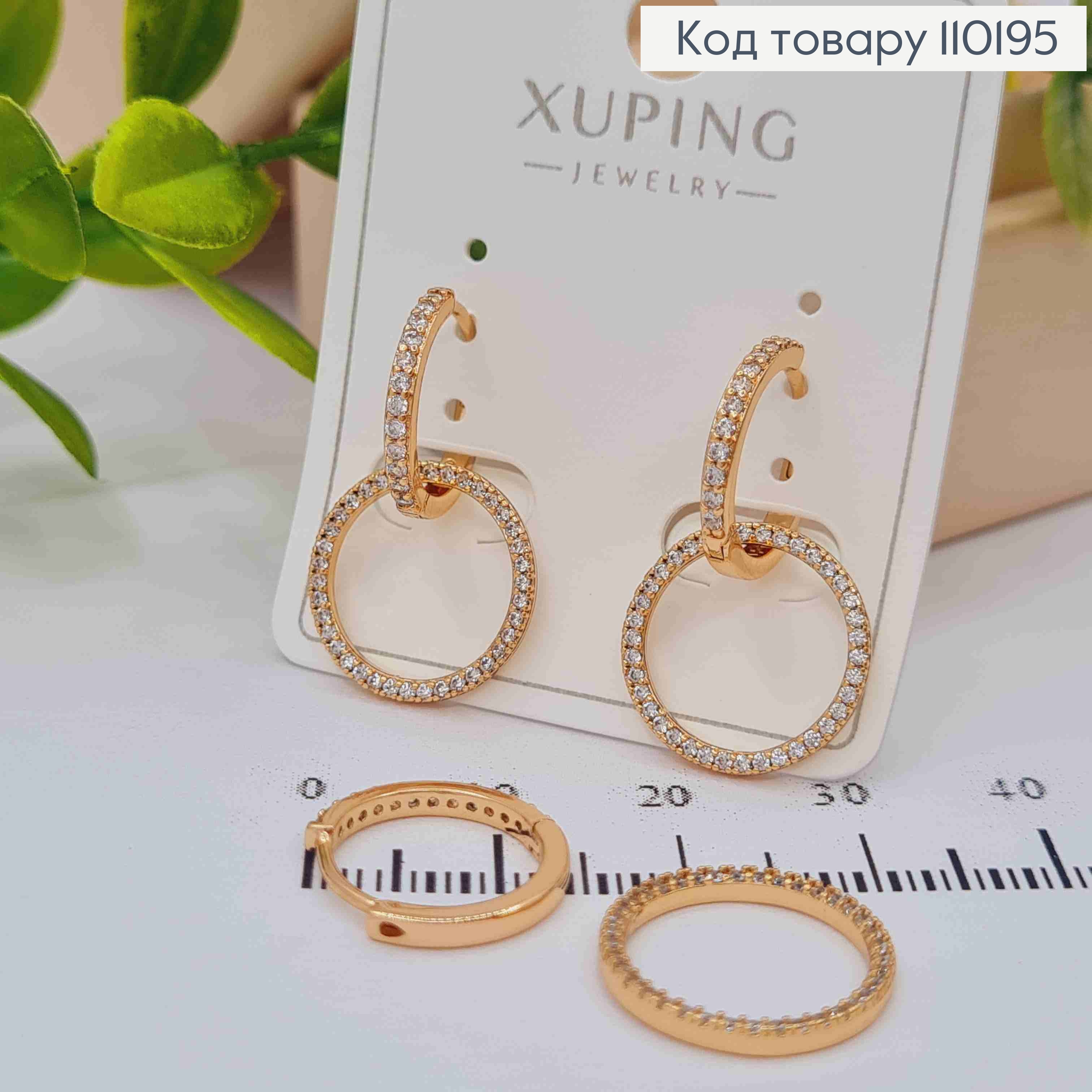 Сережки кільця з підвісним знімним колечком в Блискучих камінцях, діаметр 1,3+1,5см, Xuping 18К
