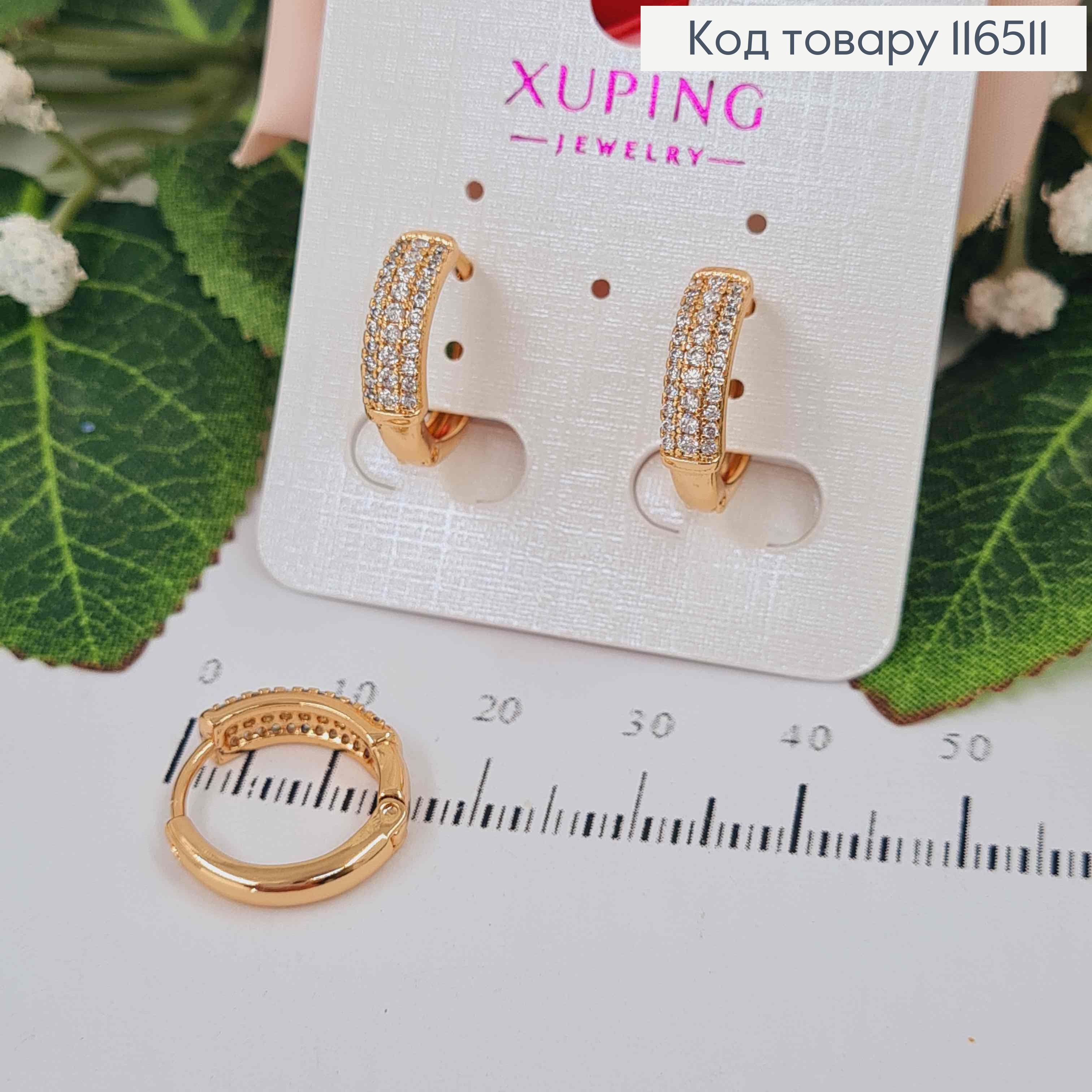 Сережки кільця, з трьома рядочками камінців, 1,5см, Xuping 18K
