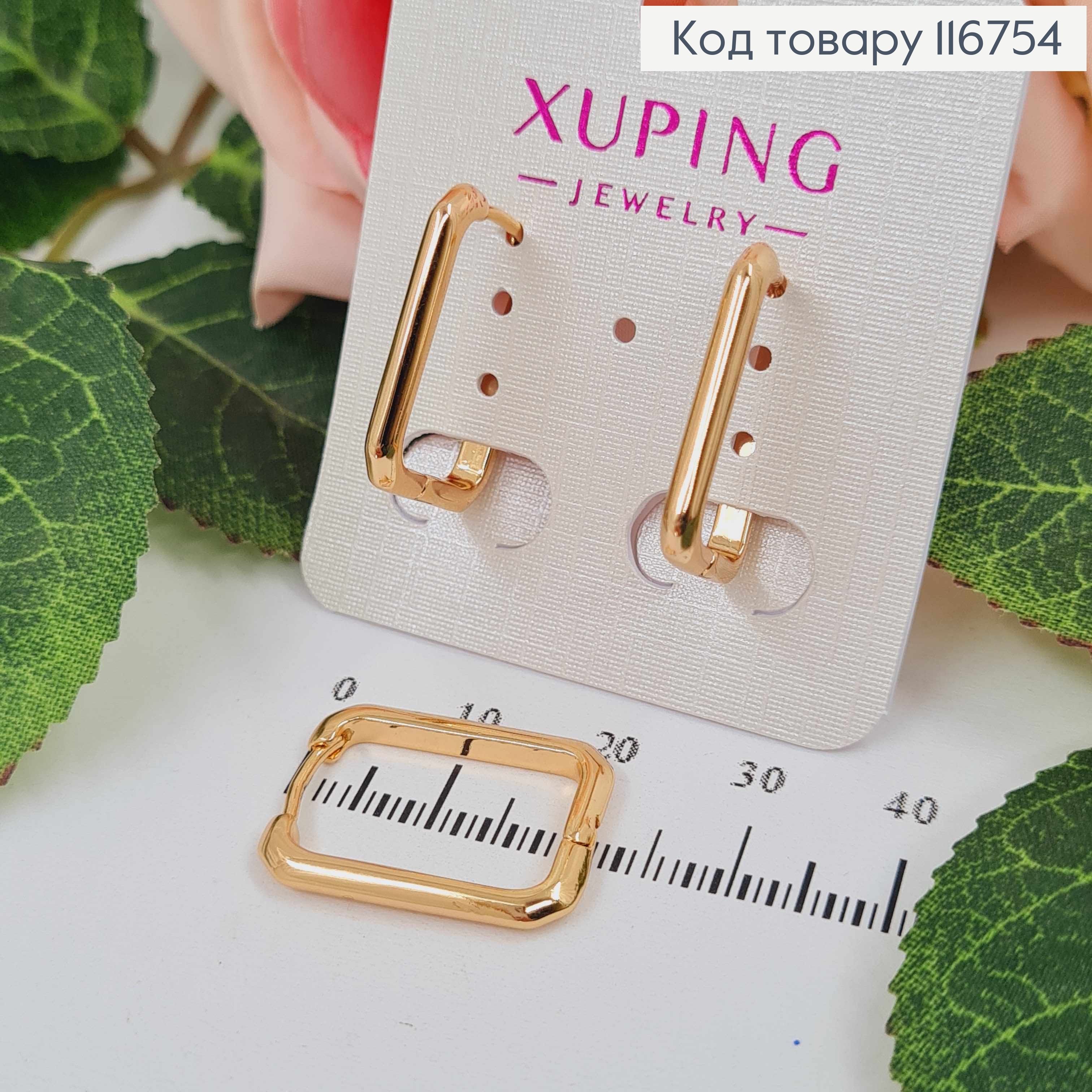 Сережки класичні прямокутнички, 2см, англ. заст. Xuping 18K