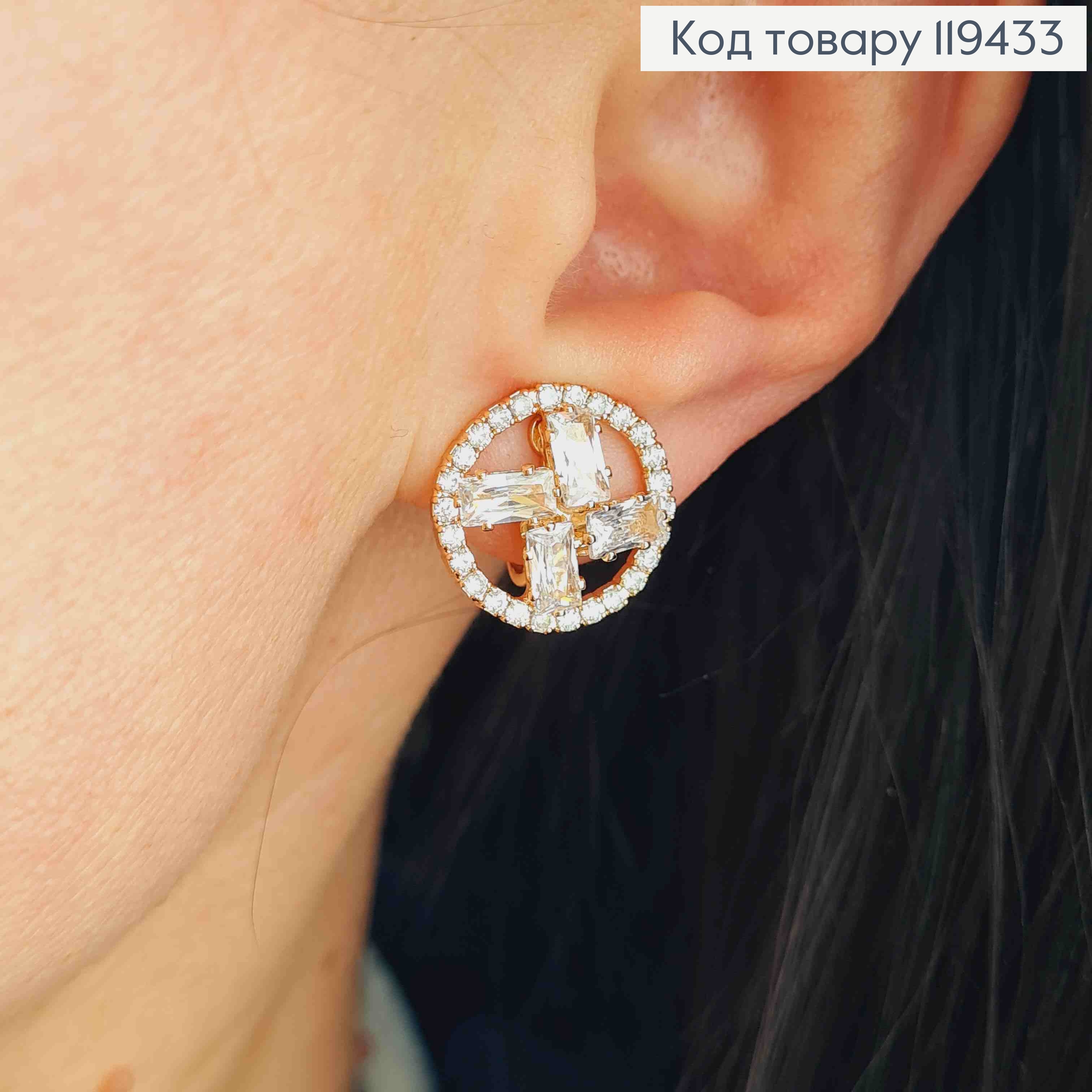 Сережки "Х" прикрашені Блискучими камінцями,  довжина 1,6см, англійська застібка, Xuping 18К 110206 фото