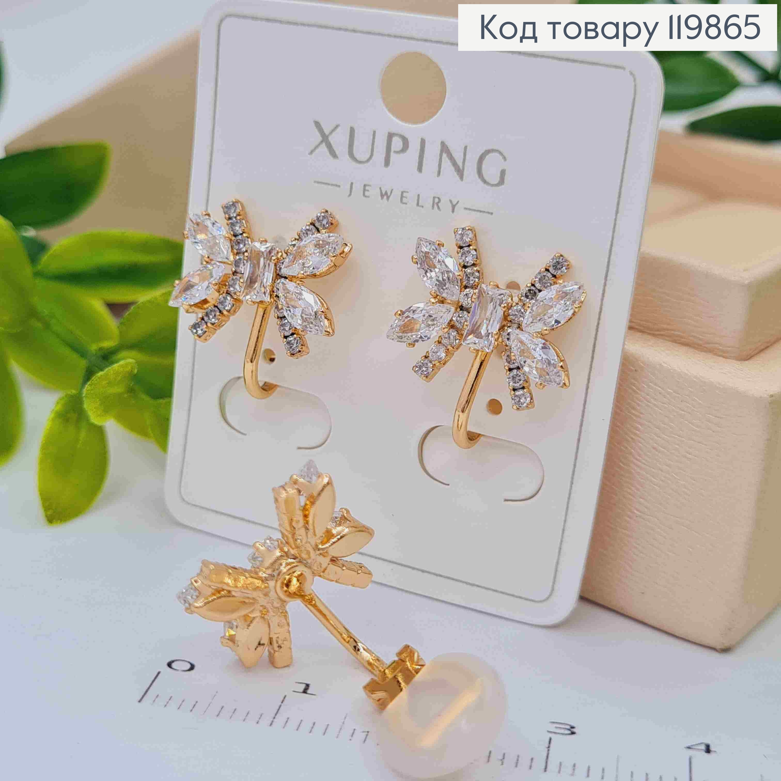 Сережки "Стріли" прикрашені Блискучими камінцями,  довжина 2,6см, англійська застібка, Xuping 18К 110201 фото