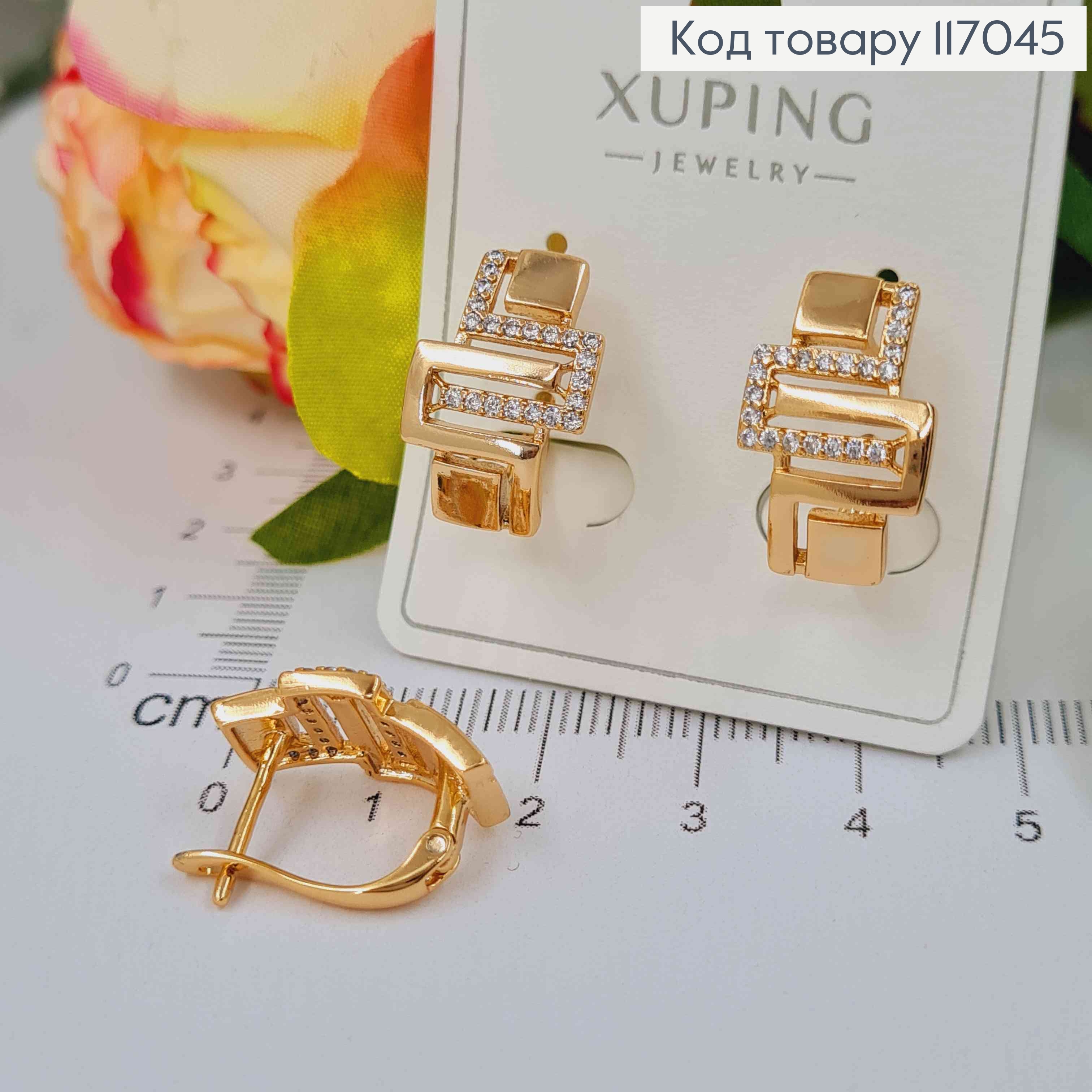 Сережки з квадратним Блискучим каменем, 1,9см, англійська застібка, Xuping 18K 110257 фото