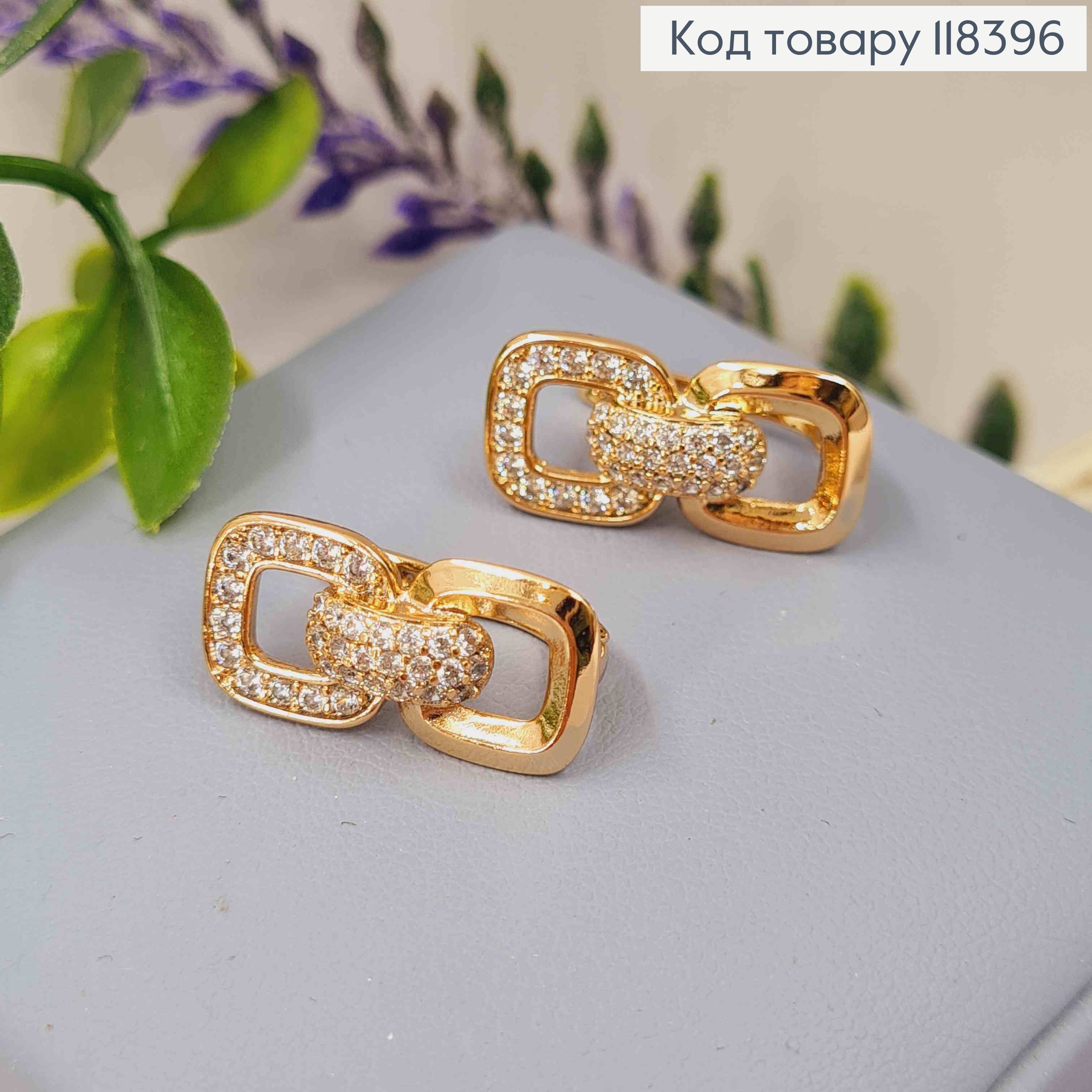 Сережки кільця "Прямокутні" прикрашені Блискучими камінцями,  довж2,4см, застібка шпилька,Xuping 18К 110199 фото