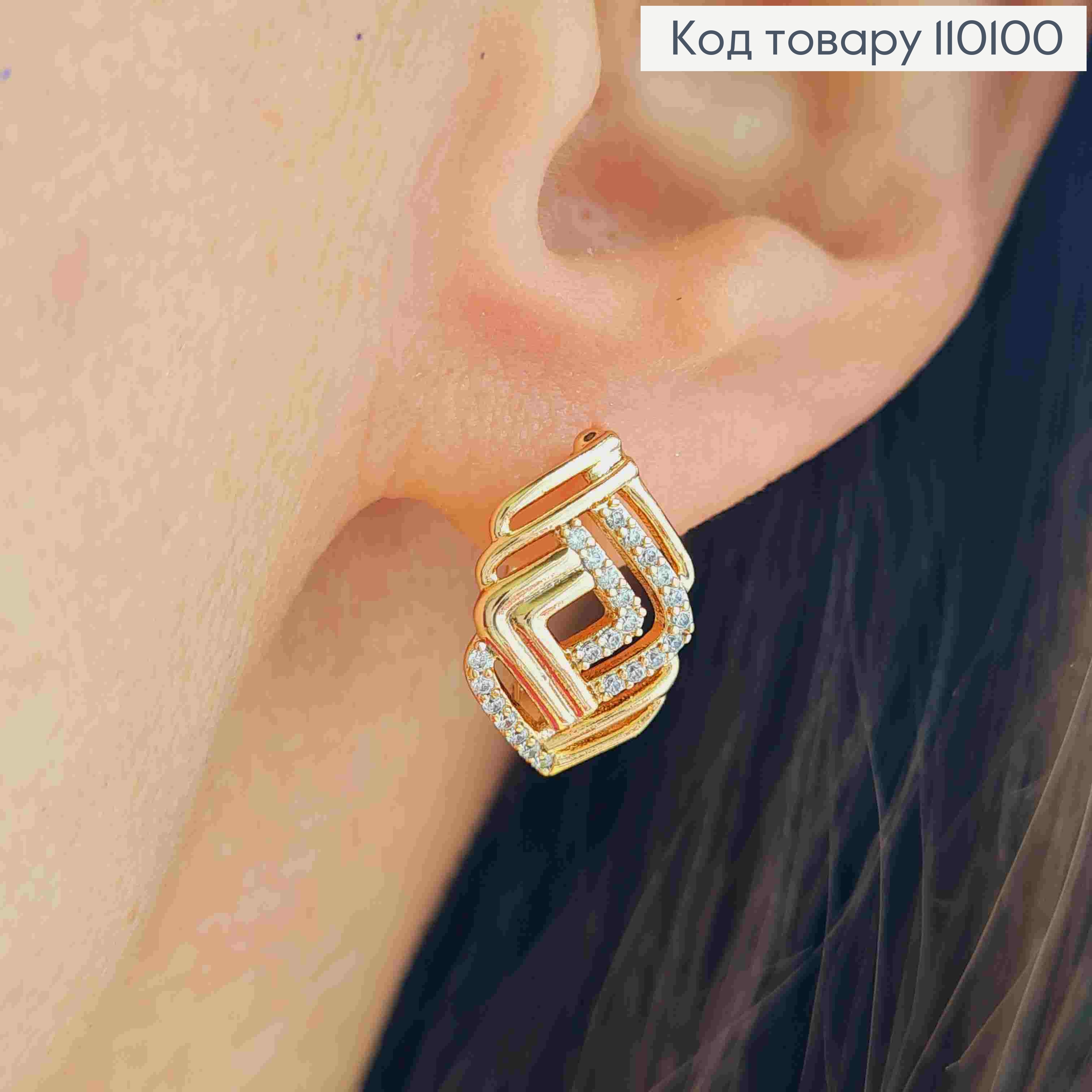 Сережки кільця "Прямокутні" прикрашені Блискучими камінцями,  довж2,4см, застібка шпилька,Xuping 18К 110199 фото