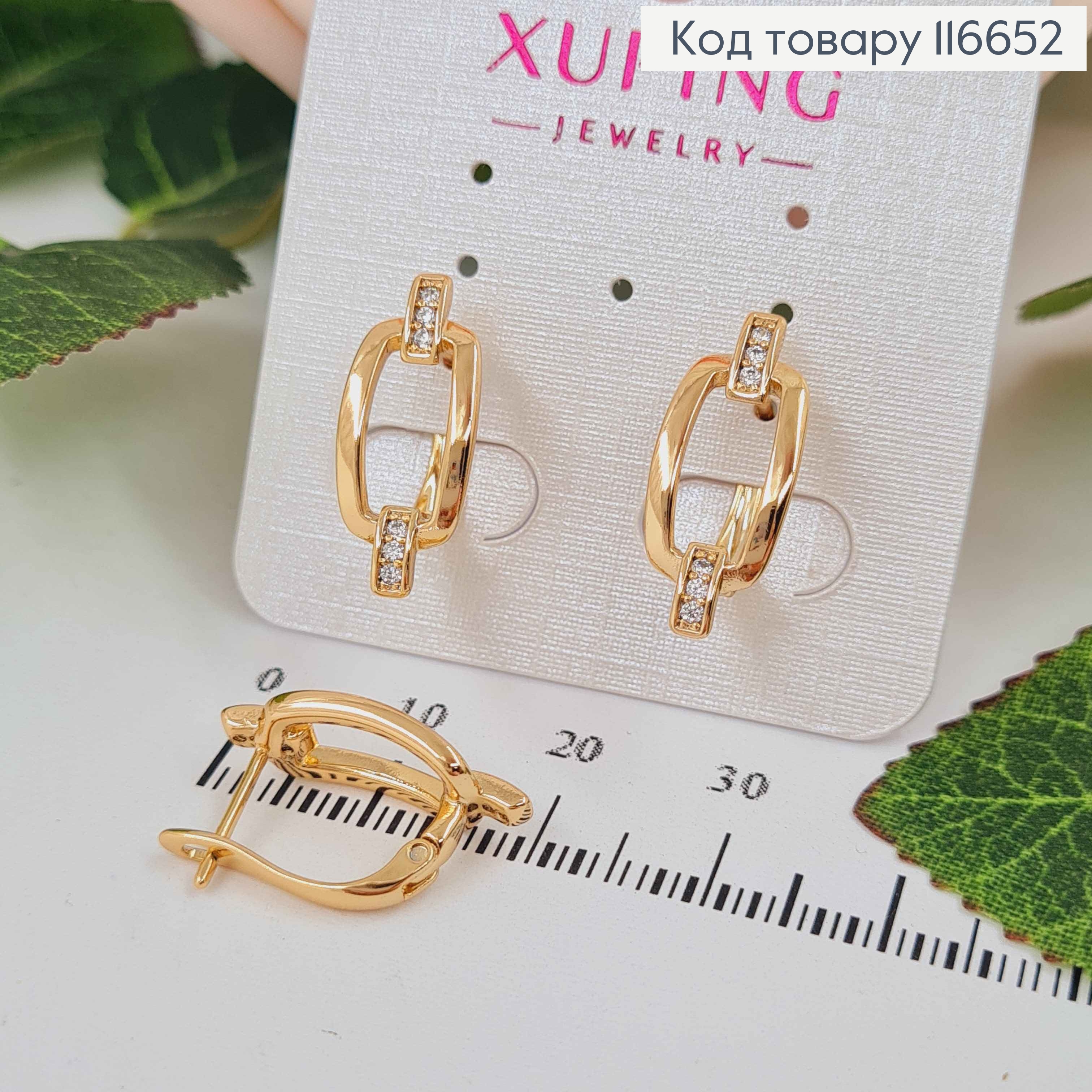 Сережки " Овальна Пряжка" з камінцями, 2см, англ. заст. Xuping 18K