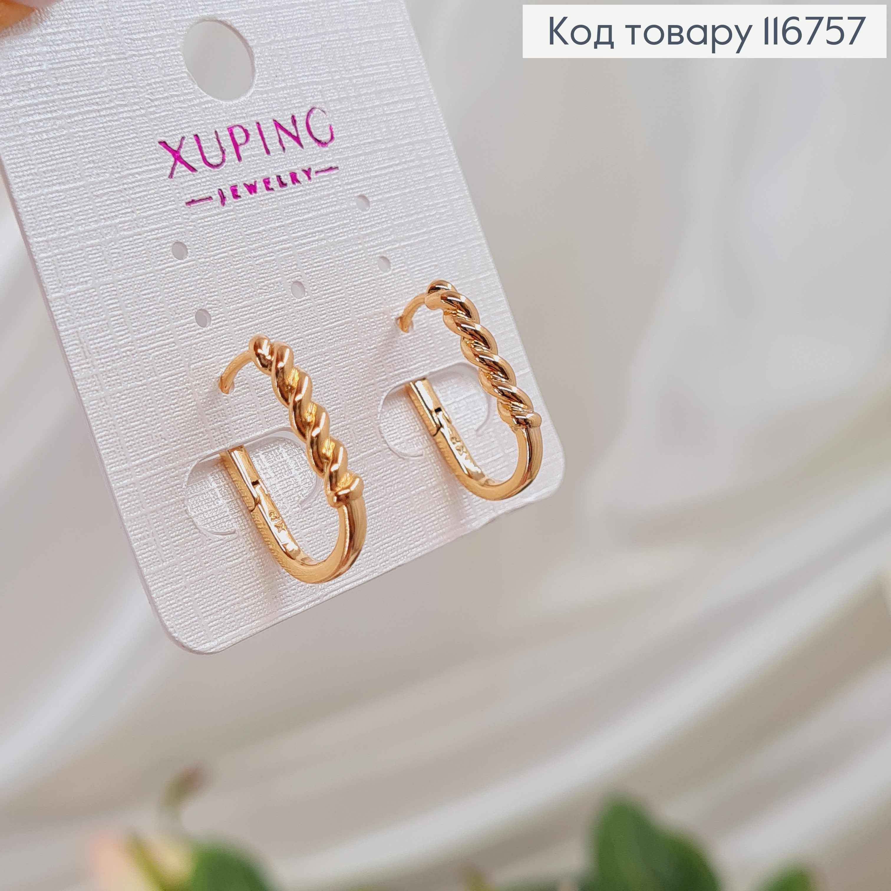 Сережки овальні кільця, з крученою вставочкою, 2см, англ. заст. Xuping 18K